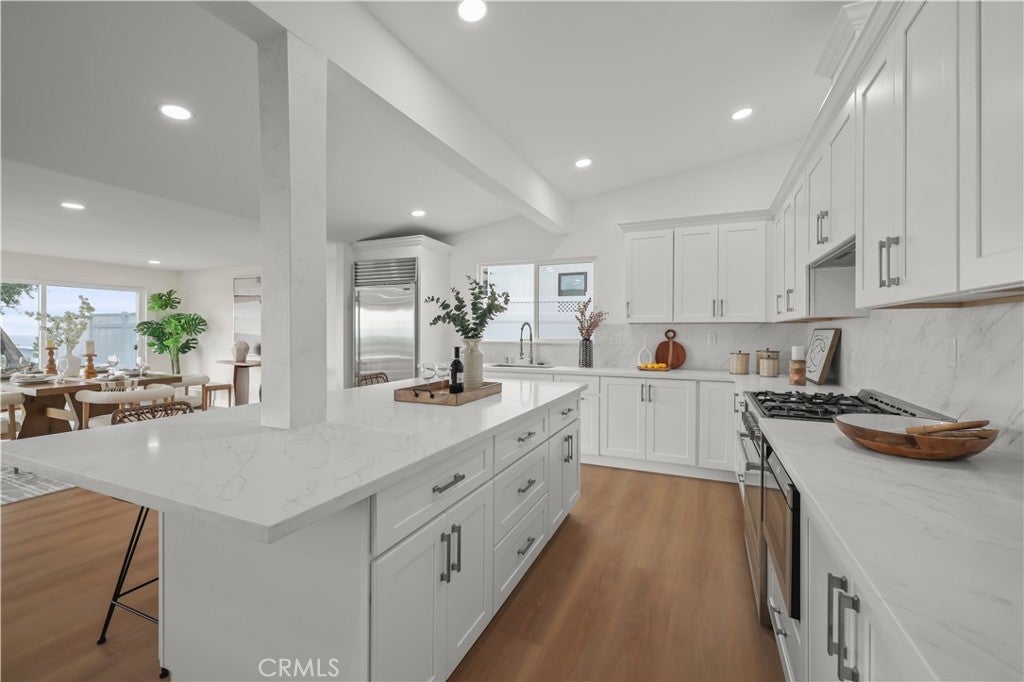 Discover an extraordinarily rare opportunity in prestigious Rancho Palos Verdes: a single-story, ocean-view estate that has been fully remodeled! This exceptional 2,510 square foot residence features an open space including the 558 square foot addition (permits waiting for final approval) on main house, four bedrooms, four bathrooms, and breathtaking Pacific Ocean and Catalina view from the kitchen, living room, and master suite. Through the gated private courtyard, entering the main door, you are welcomed by the elegant foyer. Then the spacious open floor seamlessly connects kitchen, living, and dining spaces into one room where ocean vistas provide your constant backdrop. The master suite with walk in closet offers a private ocean-view retreat. Two other suites provide exceptional privacy for family and guests. Stepping out of the living space, the new patio deck and turf in backyard offer the relaxation and enjoyable costal life. Every major component is brand new: roof, two AC units, kitchen with new island and new appliances, four bathrooms, double-pane windows and doors, beautiful floor throughout, recess lights, electricity sub panel, and fresh interior and exterior paint creating a crisp, modern canvas. Single-story living eliminates stairs entirely. The house is near to the Trade Joe's supermarket, stores, restaurants, parks, hiking trails, golf courses, Terranea resort and highly rated schools! Conveniently located in one of Southern California's most prestigious communities, this turnkey home requires no repairs or updates—simply move in and start enjoying coastal living immediately. This is more than a house; it's an investment in your future and a rare opportunity to own the complete package discerning buyers dream about but rarely find. Buyers and buyers' agents should verify all measurements independently and review all permits and approvals with the appropriate city/county agencies. Buyers and buyers' agents are responsible for conducting independent due diligence to verify all property information, permits, square footage, condition, and any other material facts related to this property.