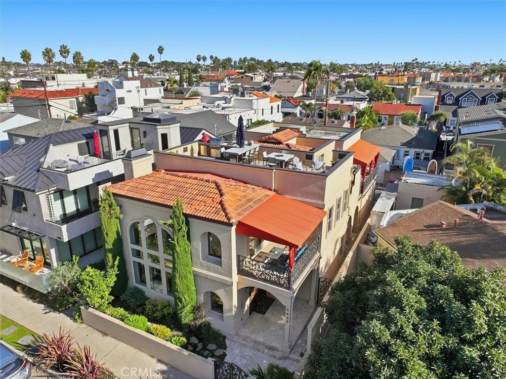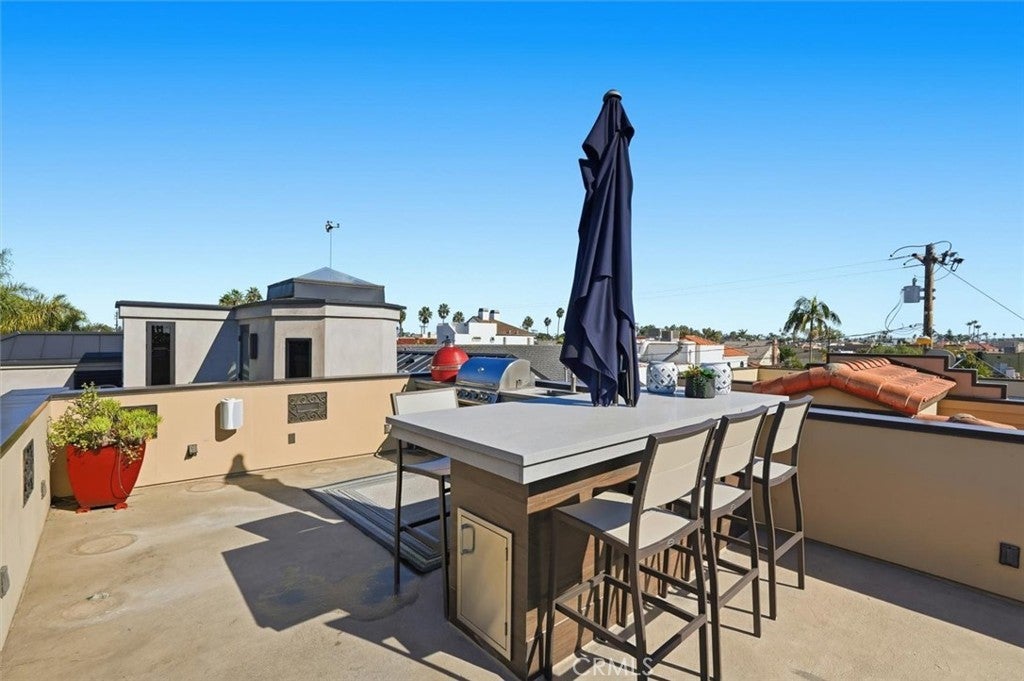 Stunning, designer Naples Island home just steps from the waterfront and adjacent to the upscale second street restaurants in the beautiful luxury neighborhood of the Belmont Shore offering exceptional value, luxury finishes, and an expansive rooftop deck with spectacular 360° water and city views. Built in 2006, this coastal residence showcases an impressive open-concept layout with soaring two-story ceilings, dramatic window displays that flood the home with natural light, and beautiful travertine and hardwood floors throughout. The highly upgraded chef’s kitchen is equipped with premium stainless-steel appliances including Wolf range and hood, Wolf double ovens, and a Sub-Zero refrigerator, centered around a functional island ideal for cooking and entertaining. The spacious Great Room flows seamlessly to an outdoor patio, creating the perfect indoor-outdoor living environment. The main level also features a private fourth bedroom plus a home theater or dedicated office option, and a massive three-car garage. Retreat upstairs to the expansive primary suite complete with an adjacent sitting room ideal for work, relaxation, or a home gym. Enjoy ocean breezes from the private balcony. Dual walk-in closets lead to the spa-inspired primary bath featuring a jetted soaking tub, steam shower, double sink vanity, and a separate makeup vanity for getting ready for nights out in nearby Belmont Shore and Naples. Two additional generous bedrooms complete the second floor, including an ensuite bedroom and a shared balcony. The show-stopping rooftop deck is built for top-tier entertaining with panoramic views, a built-in BBQ, smoker, refrigerator, and sink, perfect for hosting gatherings or enjoying peaceful sunsets over the bay. Additional amenities include built-in Sonos speakers, recessed lighting, and thoughtful designer upgrades throughout. Experience luxury coastal living at its finest in this exceptional Naples Island home.