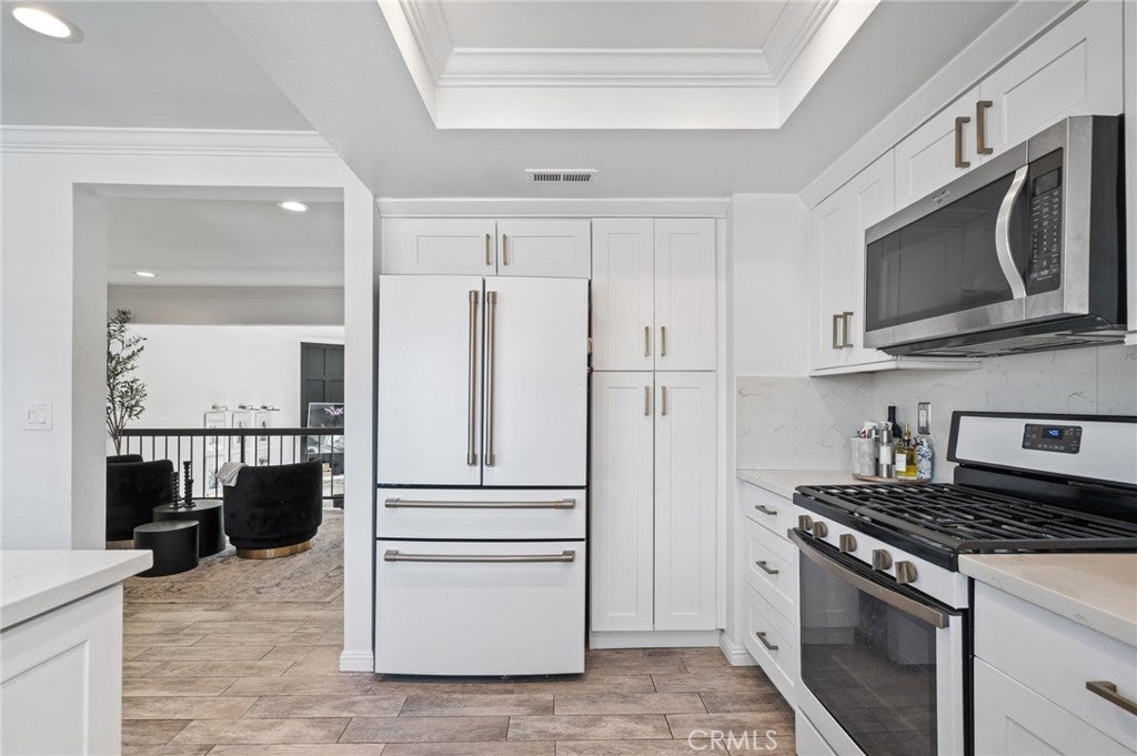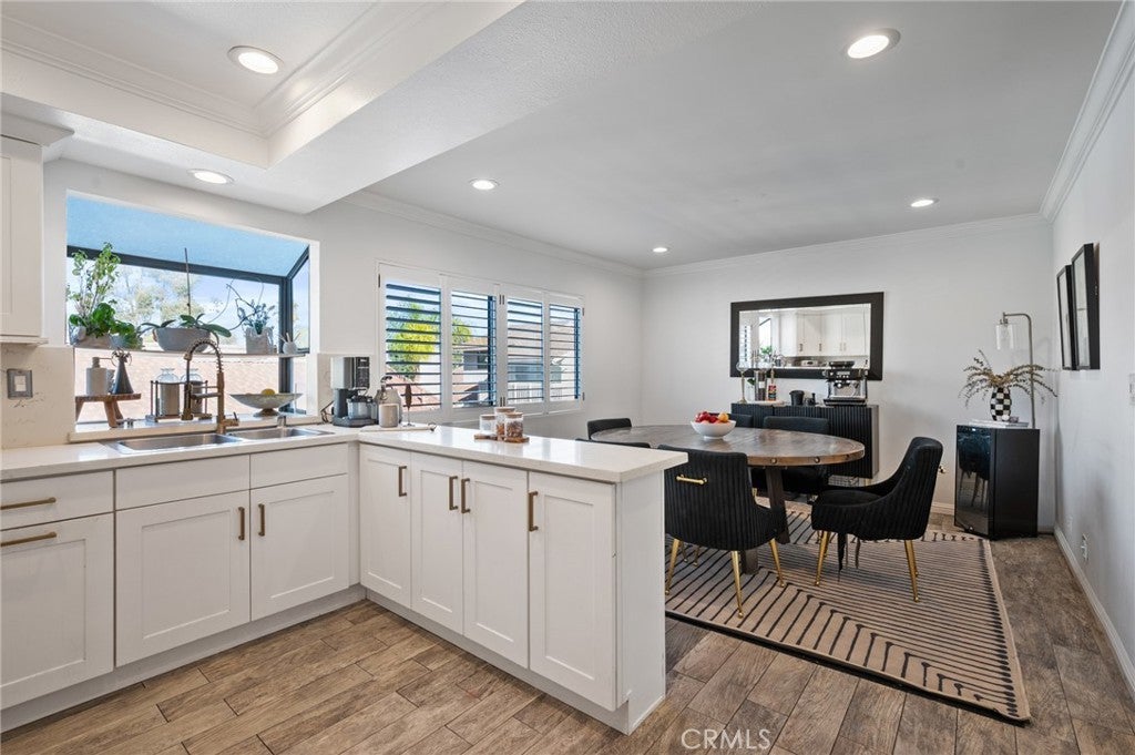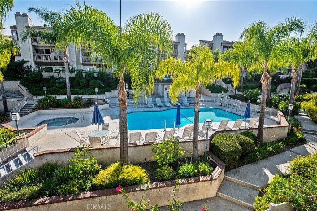 Stylish & Spacious Peninsula Living in the Award-Winning Palos Verdes School District! Welcome to this beautifully updated 3-bedroom, 2.5-bath residence ideally situated within the highly acclaimed Palos Verdes Peninsula Unified School District. Perfectly positioned near premier shopping, dining, and with convenient access to all that Los Angeles has to offer, this home blends comfort, style, and exceptional location. Designed with a desirable open split-level floor plan, the light-filled living room impresses with soaring vaulted ceilings, wide-plank flooring, and a striking black-accent fireplace wall that creates a sophisticated focal point. Sliding doors lead to a private front patio overlooking the community pool — an ideal setting for morning coffee or evening relaxation. The remodeled kitchen is both timeless and on-trend, featuring shaker-style cabinetry, quartz countertops, brass hardware, and stainless steel appliances. It opens seamlessly to a chic dining area accented by plantation shutters, perfect for both intimate dinners and entertaining. Retreat to the primary suite, where dramatic vaulted ceilings and a custom accent wall create a serene ambiance. The spa-inspired en-suite bath has been thoughtfully renovated with dual marble vanities and refined finishes. Additional highlights include crown molding, recessed lighting, and a direct-access two-car garage for added convenience. Located in the heart of the Peninsula, this home offers quality craftsmanship, everyday comfort, and outstanding value in one of Southern California’s most sought-after communities.