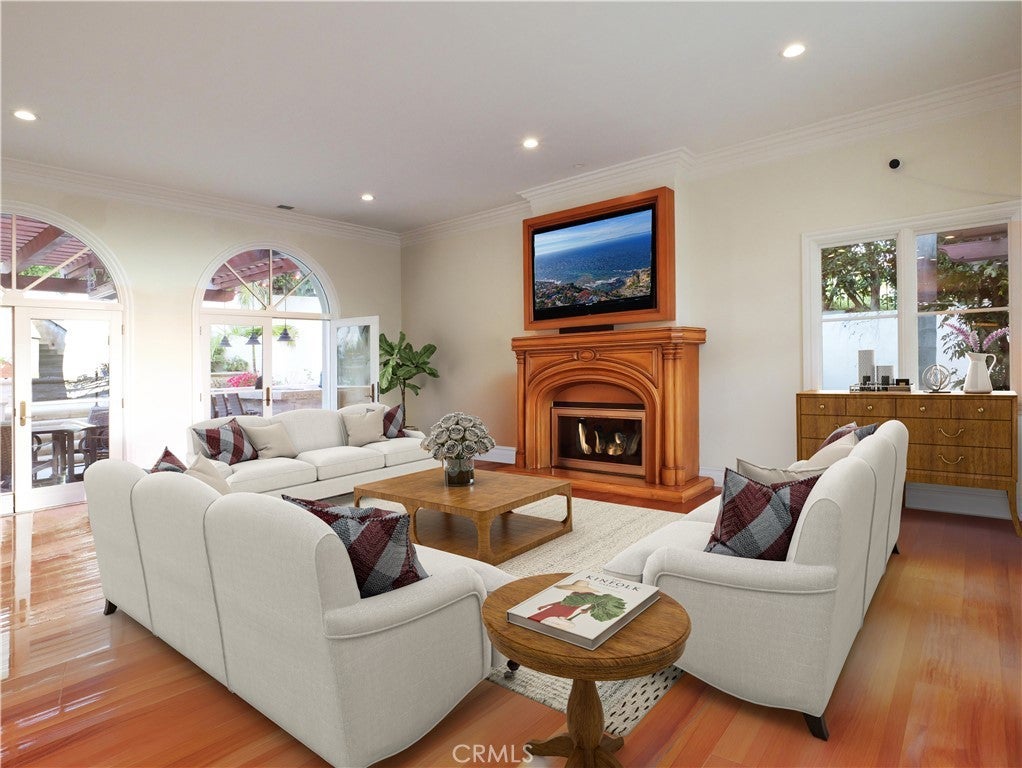 Commanding a private 0.72-acre parcel in prestigious Montemalaga, this spectacular 7,556-square-foot gated tennis estate offers magnificent scale and timeless design. Reached via a sweeping private drive, the 6-bedroom, 6-bathroom home introduces a breathtaking foyer where a double spiral staircase ascends beneath a soaring domed skylight, flooding the space with natural light. Exceptional craftsmanship defines every bright room, highlighted by rich wood floors, elegant archways, and six fireplaces. The main level balances sophisticated entertaining with effortless daily living. The formal living room features custom herringbone wood floors and soaring windows, while the formal dining room offers bespoke cabinetry. The chef’s kitchen boasts a commanding island, oversized Sub-Zero refrigerator, Viking range, and three Thermador ovens. Flowing into a sunlit breakfast room and sunken family room, the open layout connects perfectly to the outdoor patio. A main-floor guest suite provides a private retreat. Upstairs, the primary suite is an expansive coastal sanctuary. Showcasing picturesque ocean horizon views and vibrant sunsets, this retreat features a grand fireplace, private viewing balcony, adjoining office, and a Hollywood-style custom closet. The spa-caliber bath delivers daily rejuvenation with a deep soaking tub and steam sauna shower. Impeccably appointed secondary bedrooms offer generous proportions and supreme comfort. Designed for the entertainer, the second story also features an expansive game room with a wet bar and concealed drop-down screen. On the lower basement level, a custom-crafted wine room serves as a sophisticated retreat for billiards and showcasing fine vintages. Outside, the resort-style grounds offer the ultimate indoor-outdoor lifestyle. Step into a lush oasis featuring a sparkling pool and spa, fireside lounges, heat lamps, and a fully equipped outdoor kitchen and bar. A recently resurfaced championship tennis court features a dedicated viewing terrace / cabana, while illuminated pathways lead to serene, hidden vegetable gardens. Offering an unparalleled standard of living within the highly rated Palos Verdes Peninsula school district, this extraordinary property is a rare opportunity to experience prestigious coastal luxury.