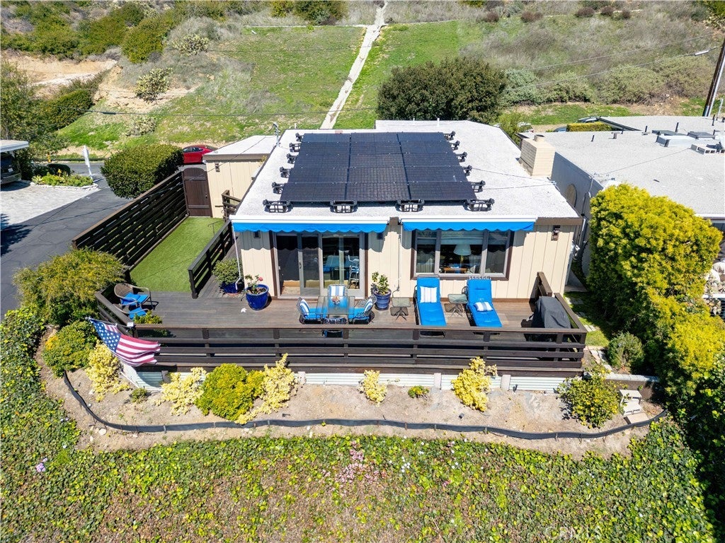 Experience the ultimate in coastal luxury at the prestigious, private, 24/7 guard-gated Portuguese Bend Beach Club, where breathtaking ocean views stretch across sandy beaches, scenic rock jettys, and an incredible coastline adorned with fascinating rock formations and fossils. Listen to the soothing sounds of the waves and take in the stunning colors of the Pacific from this highly sought-after beach bungalow. This mid-century modern retreat offers 3 bedrooms, 2 baths, and approximately 1,662 sq. ft. of living space, designed for seamless indoor and outdoor living. The home is all-electric and features a solar system with battery backup, providing energy efficiency and peace of mind. Inside, enjoy beautiful hardwood floors, large windows that flood the space with natural light, and an updated kitchen with sleek granite countertops. Step onto the expansive balcony and soak in unobstructed views of Catalina Island, with breathtaking sunsets over Inspiration Point as your daily backdrop. Just a short, easy walk away, the private sandy beach awaits, complete with fire pits, palapas, and a children's play gym—perfect for relaxation and entertainment. This is a rare opportunity to own a true coastal gem in a highly coveted beachfront community. Don’t miss your chance to experience seaside living at its finest!