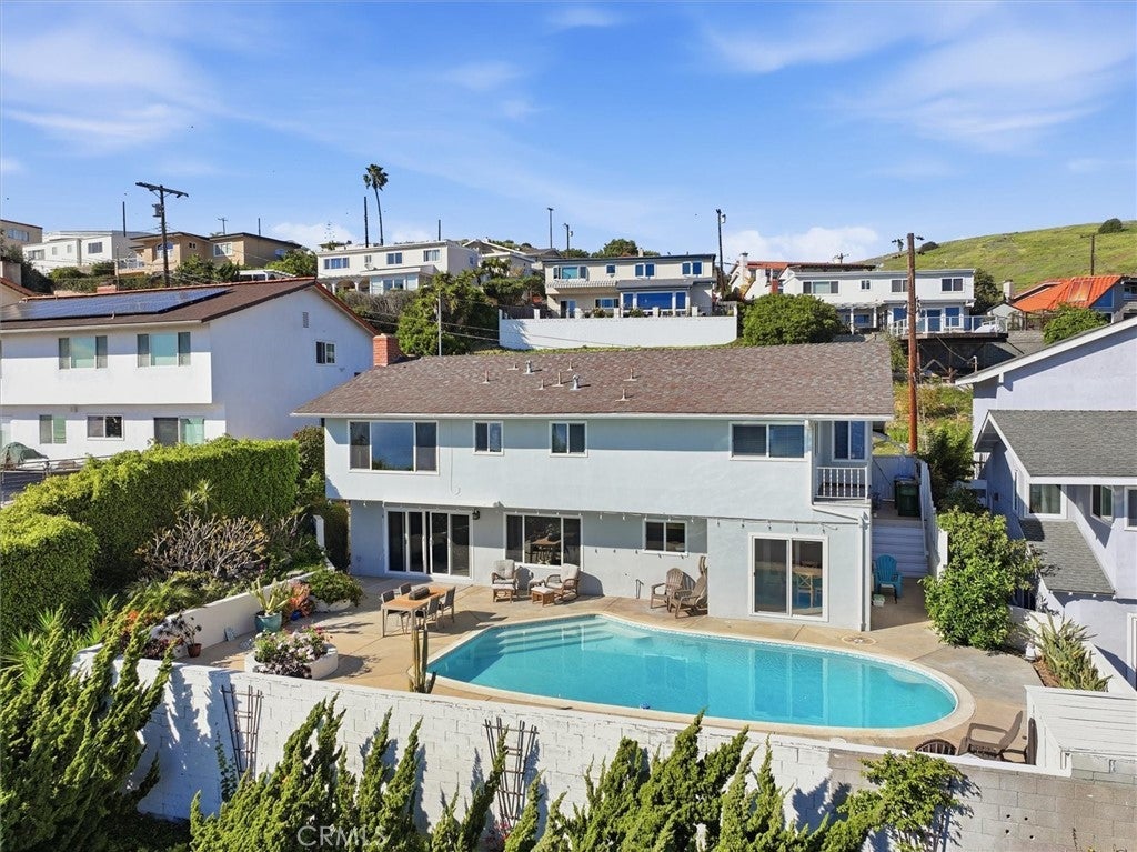 Imagine starting your day with the sunrise toward Dana Point and ending with the golden sun melting into the Pacific behind Santa Barbara Island, with Catalina Island perfectly centered on the horizon. That is the everyday backdrop at this South Shores home, where breathtaking ocean views unfold from nearly every room and from the front-row pool overlooking the coastline. From morning coffee overlooking the water to watching the clouds transform the sky throughout the day, no two days are ever the same — offering the kind of scenery most people only experience on vacation. This home was designed to embrace natures incredible vistas, beginning with the entry level that welcomes you with a versatile dining area or den complete with a wet bar and direct access to the garage. Downstairs, the living room opens toward the view, centered around a fireplace with sliding glass doors that lead directly to the backyard and pool. The living room flows into a sitting room facing the ocean and a kitchen featuring granite countertops, natural-tone cabinetry, and a breakfast nook with a second set of sliding doors to the yard. There is one bedroom on this level, currently used as an office, with glass French doors that enjoy the views, along with a nearby three-quarter bathroom and storage room. The thoughtful tri-level layout continues upstairs, where the remaining three bedrooms capture elevated views. The primary suite serves as a peaceful retreat, highlighted by a large picture window framing the coastline and a remodeled ensuite bathroom with a spacious walk-in shower showcasing a custom angled glass design. Step outside and the backyard becomes the showstopper. The ocean-facing pool and expansive patio create a dreamlike setting to relax and entertain. Whether hosting sunset dinners, enjoying warm afternoons by the pool, or simply unwinding as the sky changes over the Pacific, this outdoor space was designed to be enjoyed! Additional upgrades include hardwood floors, central HVAC, remodeled kitchen and bathrooms completed between 2014-2016. Conveniently located near stunning hiking trails, shopping, restaurants, and the exciting new West Harbor development. Whether you like to entertain or prefer peace and privacy, this home offers a front-row seat to the very best of coastal living — where breathtaking ocean scenery, a poolside retreat, and a once in a lifetime opportunity come together in one exceptional property. This is refined living at its best. Welcome home!