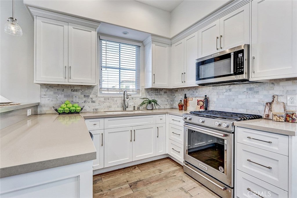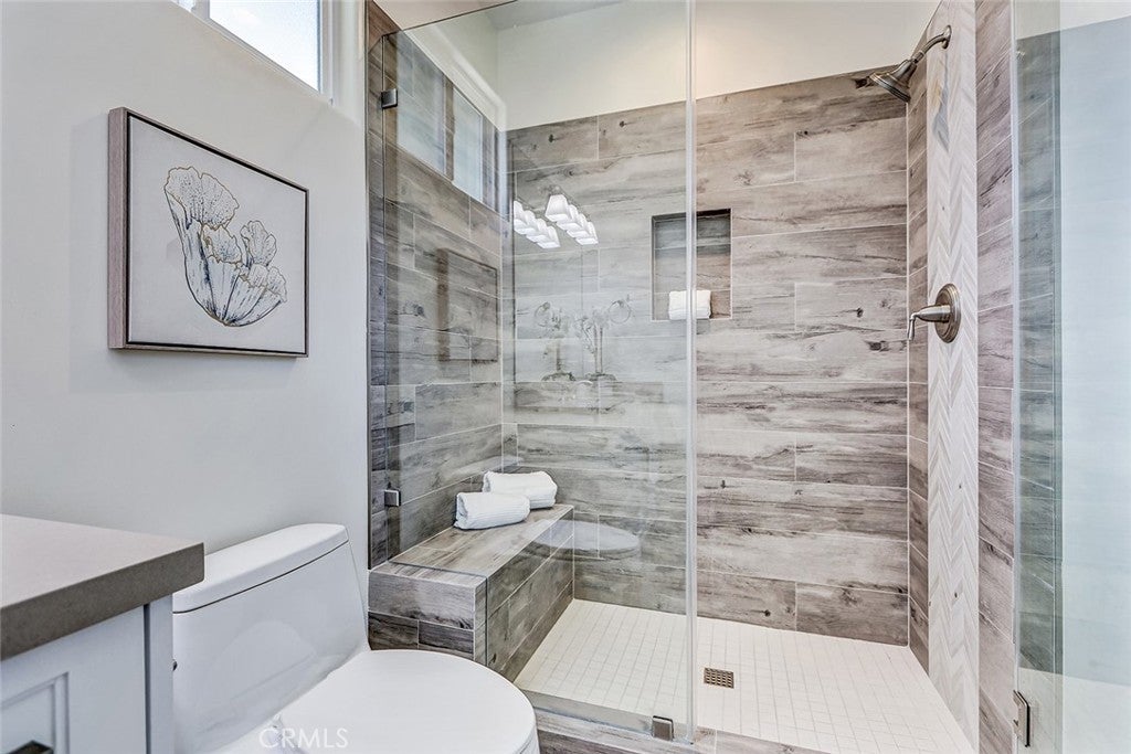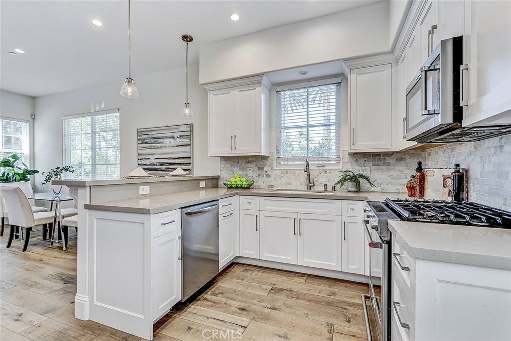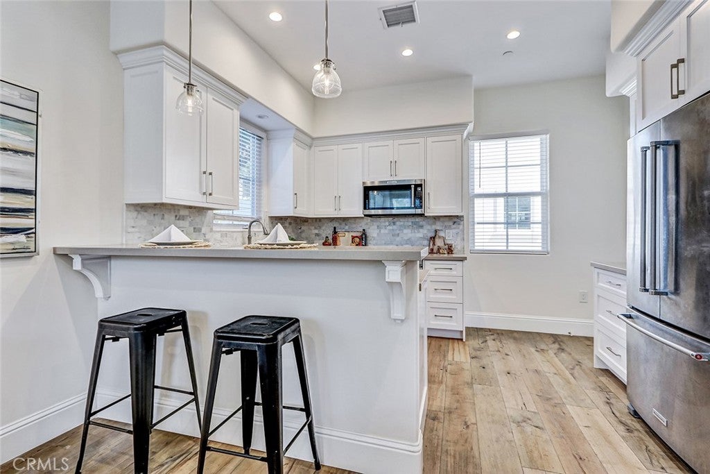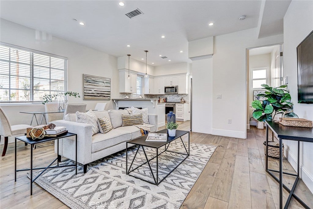 Beautifully built in 2020, this light-filled Walteria townhome offers modern style, thoughtful design, and an ideal South Torrance location. One of only four units in the complex—and one of just two with a private, enclosed exclusive-use yard—this home combines the feel of newer construction with rare outdoor space. The open-concept main level features wide-plank flooring, recessed lighting, and a seamless flow between the living, dining, and kitchen areas. The bright white kitchen is the heart of the home, showcasing shaker cabinetry, stone countertops, stainless steel appliances, a full backsplash, -perfect for everyday living and entertaining alike. Upstairs, all three bedrooms offer comfort and privacy. The spacious primary suite features high ceilings, a ceiling fan, a walk-in closet, and a private balcony for morning coffee or evening relaxation. The en-suite bath includes dual vanities, a soaking tub, and a separate glass-enclosed shower. Two additional bedrooms share a well-appointed full bath. Additional highlights include a convenient downstairs powder room, in-unit laundry, central air conditioning, and direct-access garage. Located in the highly desirable Walteria neighborhood of Torrance, this home is close to award-winning schools, parks, shopping, and a wide variety of dining options—plus just minutes from the beach. A rare opportunity to own a newer town-home with private outdoor space in one of South Torrance’s most sought-after communities.