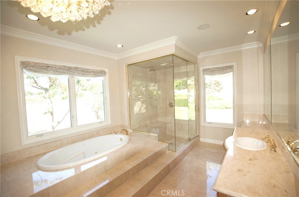 Gorgeous, One Level Home, in Guard Gated Community .................................................................................................................. This well maintained home is ideally situated within the exclusive enclave of Vantage Pointe. The nearly 1/2 acre lot and park like yard contribute to the private and idyllic setting. Generously sized rooms, spacious floor plan, vaulted ceiling, and expansive windows all add to the bright and open feeling of this elegant property. Other features include, a large gourmet kitchen with SubZero Refrigerator/Freezer, two dishwashers, gracious marble entry, custom decorative moldings, 4 car garage, and upscale materials and finishes throughout. All four bedrooms and the private office have ensuite baths. The well manicured yard includes a large patio and built in grill perfect for entertaining. This is an exceptionally rare property to be available for lease.
