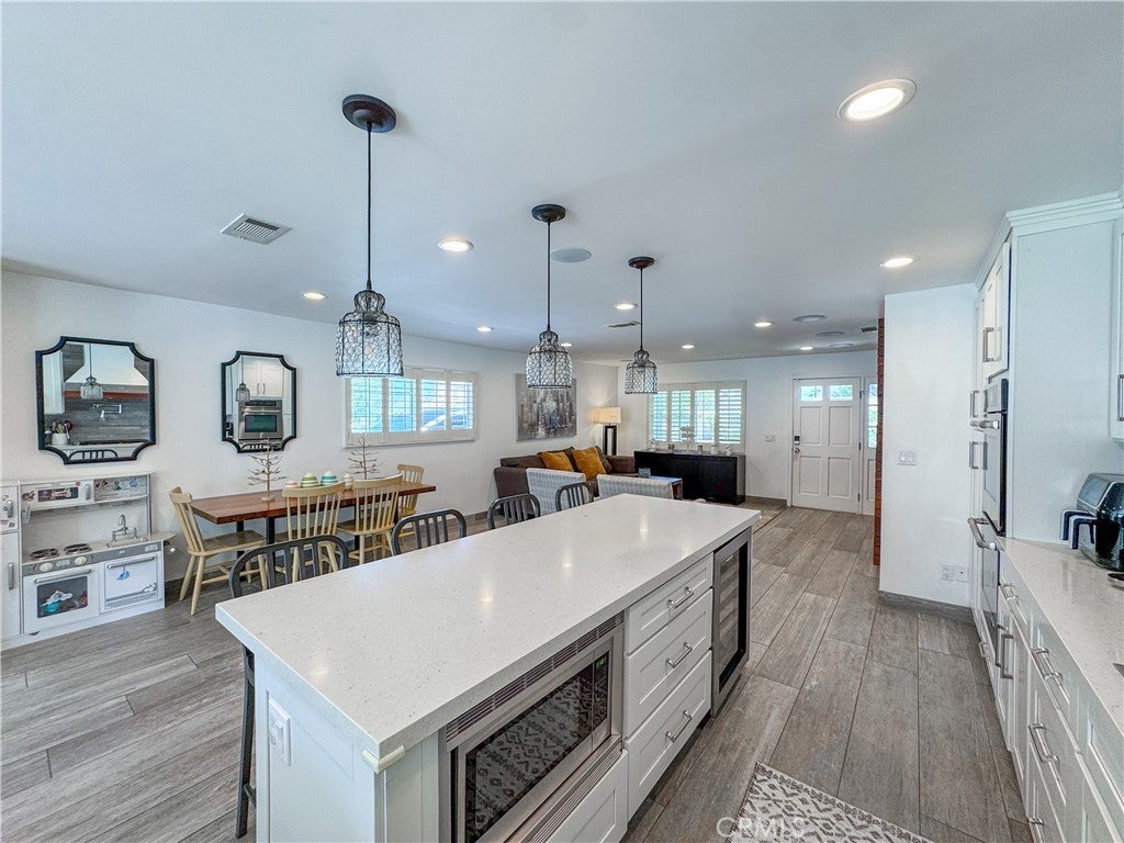 Beautifully remodeled in 2015, this cozy 4 bedroom/ 2 bath family home sits on a pretty, quiet, tree-lined street in Walteria. Its open layout is modern and inviting. This home boasts a flat, large enclosed backyard with tall palm trees and a brand new white vinyl fence which was recently installed in its perimeter. The stunning chef’s kitchen features a large center island, a double sink & wine refrigerator, a Jenn-Air six-burner range with pot filler, double ovens and so much more. The living room comes with recessed lighting, a built-in television and multiple speakers for great surround sound. This home also has solar power and an EV charger. And it comes with central air and heat, a tankless water heater and a home security system. The laundry is conveniently located inside the house, near the bedrooms with enough space for side by side washer/dryer. Adjacent to Palos Verdes, it is conveniently located near schools, parks, the south coast botanic gardens, shopping malls, supermarkets, hospitals, south bay beaches and freeways. **Although there are 4 bedrooms mentioned in the tax records, the 4th bedroom does not include a closet.