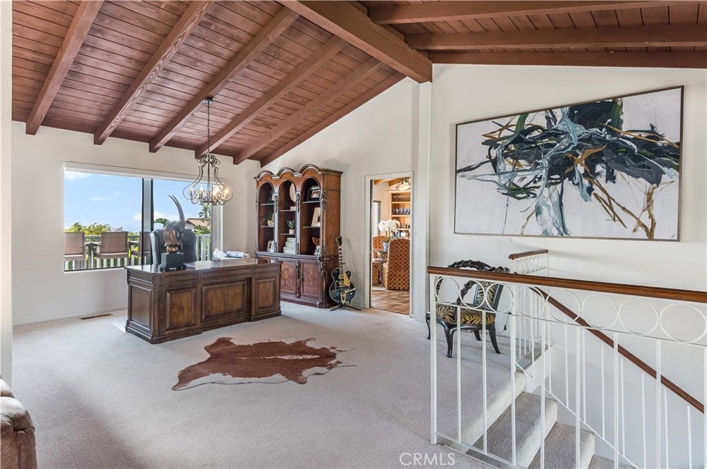 This amazing split level home is located in Lower Lunada Bay where sweeping ocean & Catalina views, high ceilings and a private backyard with pool & spa are just a few of the amenities. The large driveway grants access to the generous 3-car garage, and the adjacent gated courtyard has a bubbling fountain. Large double doors open to a welcoming entry, then up to the main living level where soaring ceilings, walls of glass, and sweeping ocean views are fully revealed; an expansive deck just outside. The large formal dining room leads to the kitchen and breakfast area. The secluded Primary suite has a generous walk-in closet and overlooks the front courtyard. A separate bedroom wing includes three additional bedrooms and two full baths, providing flexibility for family or guests. A den with a fireplace offers the option of a fifth bedroom, office, or additional living space. Whether spending a quiet evening at home or entertaining friends and family, this house is the perfect setting.