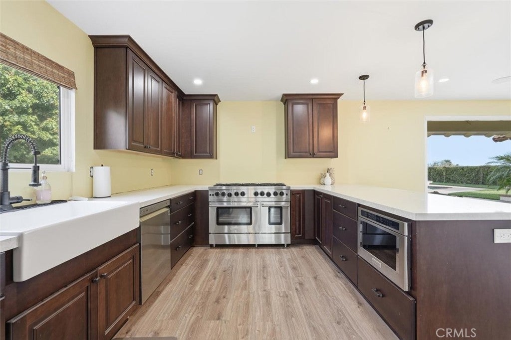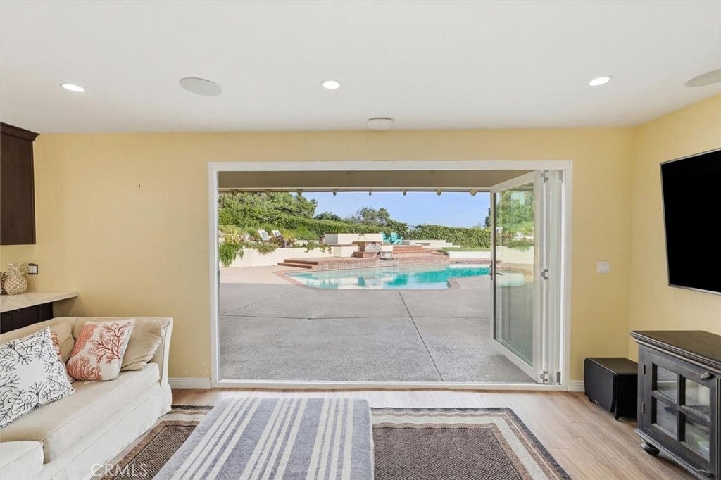 Completely renovated and taken down to the studs, this exceptional residence offers a rare opportunity to own a truly turnkey home in the coveted Ladera Linda Neighborhood of Rancho Palos Verdes. Where every major system and finish has been thoughtfully upgraded. No detail has been overlooked. The home features all new water, waste, and gas lines, along with a new furnace located in the attic and enhanced with Google-controlled Wi-Fi smart technology. The entire electrical system has been replaced, including a new panel, recessed lighting throughout, and upgraded outlets. Inside, the home showcases all-new scratch-resistant flooring, custom closets in every bedroom, and fully remodeled bathrooms featuring elegant finishes, glass shower enclosures, double showerheads, and enhanced storage. Both the living room and family room are anchored by stunning stone fireplaces, replacing the original brick for a more sophisticated, modern aesthetic. The heart of the home is a beautifully redesigned kitchen, complete with a 48-inch BlueStar range with eight burners, new dishwasher, farmhouse sink, wine fridge with dual temperature control, and thoughtfully curated finishes—perfect for both everyday living and entertaining. Seamless indoor-outdoor living is achieved through a panoramic door that opens from the family room to a spectacular backyard retreat. The expansive, flat yard offers breathtaking ocean views, a large pool with diving board, an outdoor bathroom and ample space for entertaining, relaxing, or creating your dream outdoor environment. Tankless water heater, LifeSource whole-house water filtration system, New washer and dryer hookups, Smart door lock system, Fully integrated security system with six hardwired, night-vision exterior cameras plus Ring cameras in front and back, Surround sound system in the living room, backyard, and garage. The garage has been transformed into the ultimate man cave and fitness retreat, featuring rubber gym flooring, space for equipment and weights, and multiple large-screen TVs—ideal for sports enthusiasts or private training. With all doors replaced, high-end upgrades throughout, and a seamless blend of technology and design. A rare offering combining quality craftsmanship, modern amenities, and incredible outdoor living with ocean views. Walk to Ladera Linda community center for a walk around the track, pickle ball, basketball or for the amazing views. Close to ward winning schools, restaurants and Trump Golf Club.
