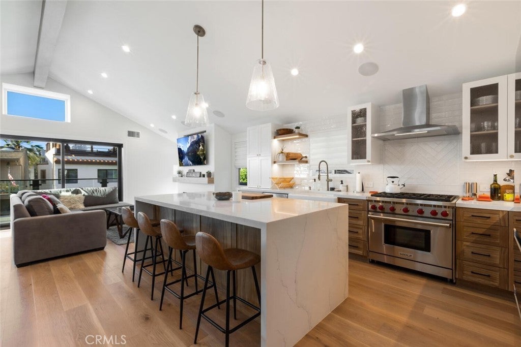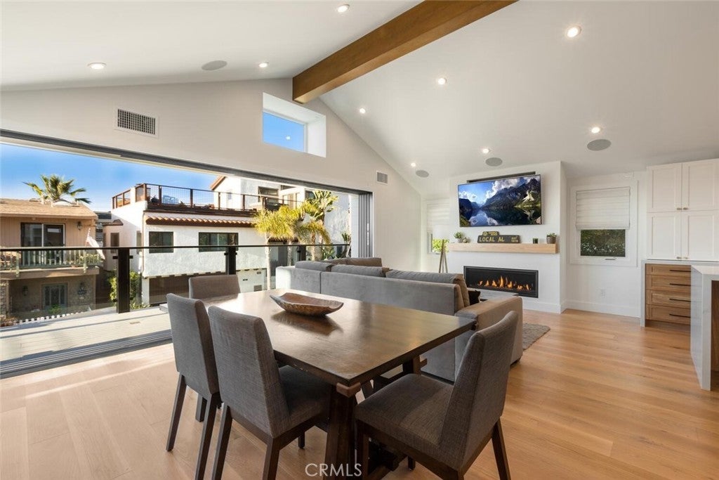 248 34th Street presents a rare lease opportunity in the Hermosa Sand Section. Located just two short blocks to the sand, and perched high on the hill, showcasing whitewater views and coastline vistas. Taken down to the studs and rebuilt in 2021, this home lives like new construction, with one-of-a-kind design upgrades throughout. Sure to leave an immediate impression, with standout curb appeal and a true street presence. Located on a quiet, non-through block that's known for its strong sense of community and quality of life, from annual fireworks block parties to Fourth of July and summer celebrations. The entry level features three bedrooms, a full bath, and a family room that blends perfectly into the backyard with a huge span of LaCantina panel doors. Leading out to a sunny and usable private backyard—a rare commodity this close to the beach. The private back yard includes a large turf area and outdoor shower. The second level is designed for day-to-day living and entertaining, anchored by a huge eat-in island and inviting kitchen. The bright great room has high ceilings and opens to a patio overlooking the ocean with huge with LaCantina doors, bringing in crisp ocean breezes. Living room also has a fireplace and built-in bar next to the dining area. A walk-in pantry, additional bedroom and full bath are also located on this level. The primary suite bathroom is outfitted with heated floors, dual vanity, freestanding tub, and an oversized walk-in shower. And a large walk-in closet tops off the primary suite. Smart home integration like a Control4 automation system and built-in Sonos speakers, delivering unparalleled security and entertainment across multiple living spaces. Lastly, the crown jewel of this home is the oversized rooftop deck with built-in fire pit, positioned at a the perfect elevation off the beach, from here you can savor panoramic views from Palos Verdes to Malibu—arguably one of the best vantage points in the South Bay. Additional highlights include an oversized two-car garage with true parking capacity for two cars, and additional room for storage to boot. Located between the Hermosa Beach and Manhattan Beach piers, just steps from The Strand and within easy reach of local favorites like Boccato’s and Brother’s Burritos. You won’t find another opportunity like this at the beach - 5 true bedrooms, an over-sized 2-car garage, a real backyard, and a large rooftop deck, all perched high on the hill and just 2 blocks from the sand!