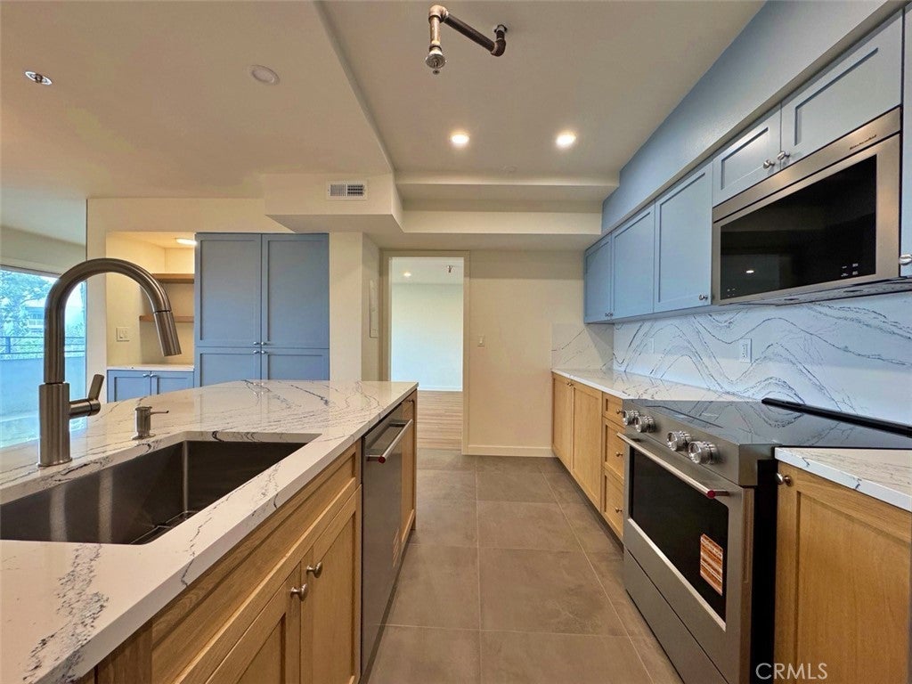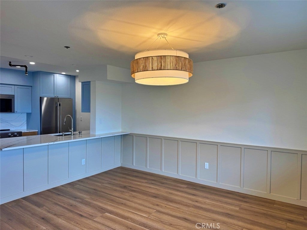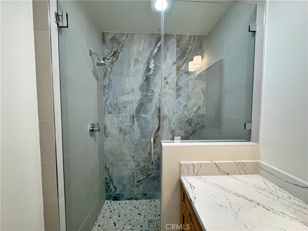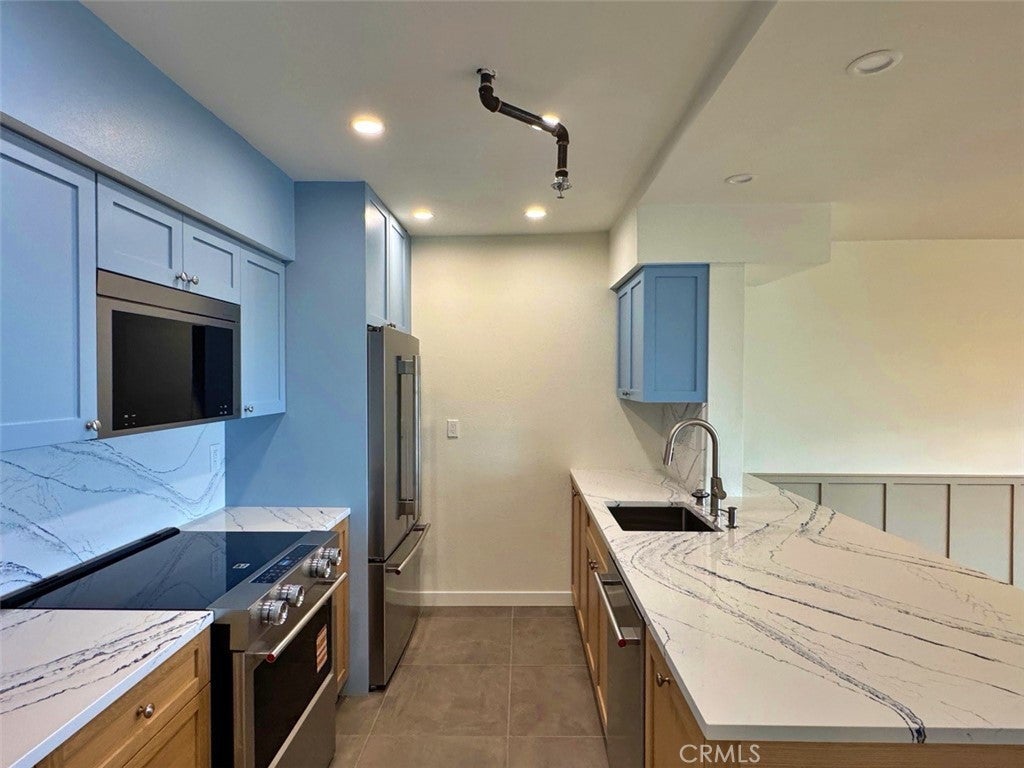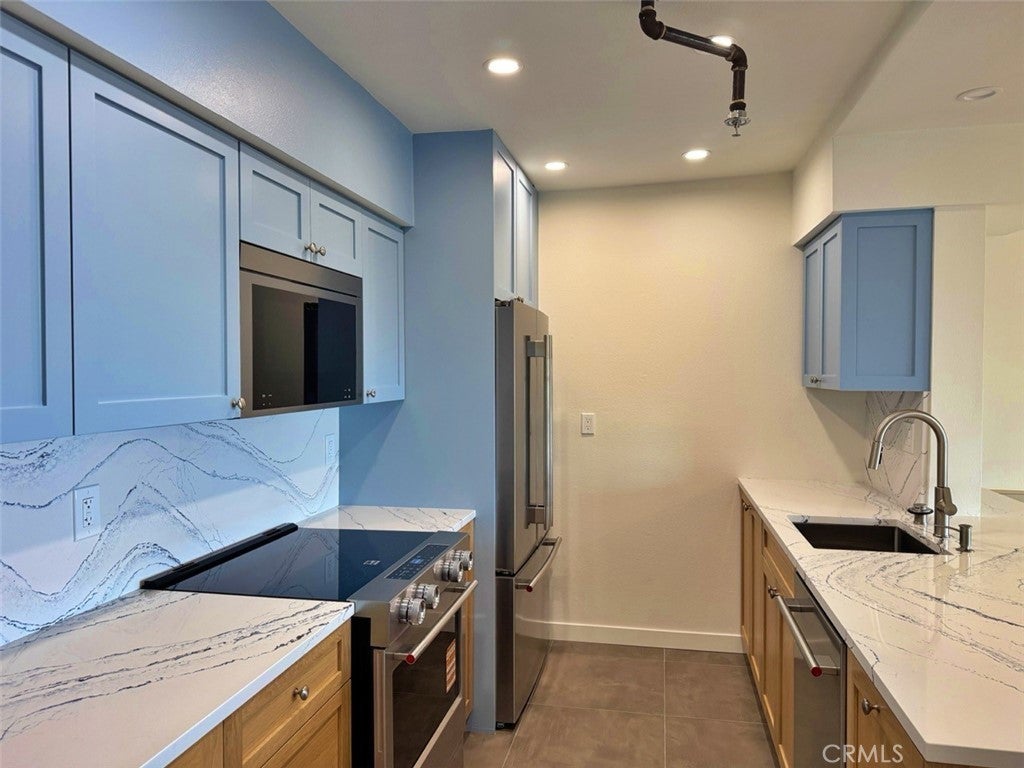 Welcome to Your Beachside Retreat Experience the ultimate coastal lifestyle in this beautifully remodeled condo, perfectly positioned just moments from Redondo Beach Pier, King Harbor, and pristine beaches. This bright and spacious front unit features an open-concept design with stunning upgrades throughout. The showpiece kitchen boasts quartz countertops with dramatic veining, two-tone cabinetry in soft blue and natural wood, stainless steel appliances, and a generous breakfast bar, ideal for entertaining. A built-in pantry and wet bar with open wood shelving and a statement drum pendant light add character to the adjacent dining area. The inviting living room centers around a sleek fireplace with a smooth plaster surround, while natural light pours in through dual-pane sliding glass doors opening to a generous balcony where you can savor sunsets and ocean glimpses. The thoughtfully designed layout includes two bedrooms and two bathrooms, each finished with coordinating quartz countertops, natural wood vanities, and elegant marble-look tile in the shower surrounds. The primary suite offers a spacious walk-in closet. For added convenience, a Samsung front-load washer and dryer are discreetly tucked into the hallway laundry area with custom cabinetry above. Beyond your private sanctuary, the beautifully landscaped complex offers resort-style amenities including a fully equipped gym, inviting spa, and relaxing sauna. Your assigned parking space in the secure subterranean garage provides peace of mind, while complimentary guest parking behind the complex welcomes your visitors. Located in the heart of South Redondo Beach, you'll enjoy easy access to local restaurants, shopping, and award-winning schools. This beachside haven offers the perfect blend of modern finishes, convenience, and coastal charm.