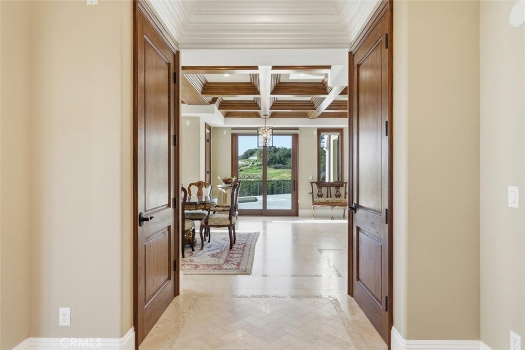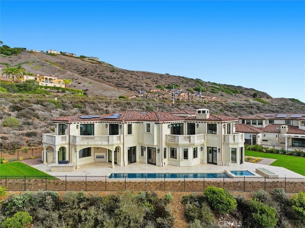 This special brand-new golf estate is a true gem with unobstructed Pacific Ocean and Golf Course Views within a private guard secure community. Introducing a new era of coastal sophistication in this new 5 bedroom with 5 ensuite bathroom estate, perfectly positioned within the prestigious Estates at Trump National Golf Course in Rancho Palos Verdes. Spanning nearly 5,000 sq. ft. of meticulously curated living space, this architectural masterpiece situated on a dream lot captures sweeping panoramic views of Trump Golf Course, the Pacific Ocean and beautiful Catalina Island from nearly every vantage point. Step through grand mahogany doors into a world defined by craftsmanship and comfort. Crema Marfil stone floors, alder cabinetry, and oak wood accents complement three elegant gas fireplaces in the living room, den, and primary suite which leads to a large primary bath with jacuzzi tub and walk in steam shower. The designer kitchen is a chef’s dream, featuring granite slab countertops, a Wolf 6-burner range with griddle, Sub-Zero refrigerator, large wine fridge, dual sinks, two dishwashers, and a custom walk-in pantry with pull-out drawers. Designed for seamless indoor-outdoor living, the residence transforms to an entertainer’s paradise, complete with a lap pool, jacuzzi, outdoor fireplace, and fire pit set against the backdrop of glowing Pacific sunsets and 6+ Trump Golf Course tees enjoyed from the yard and multiple balconies. Every modern amenity is at your fingertips, including a main floor guest half bathroom for convenience, a private elevator ensuring effortless access between the two levels, built-in speakers and lighting control, solar energy, dual-zone AC, and an expansive 1,006 sq. ft. 4-car garage. Located in a 24-hour guard-patrolled community, this new construction residence offers the ultimate blend of privacy, security, and timeless elegance. There is luxury and then there is beyond luxury. Schedule your private tour today and experience the unparalleled luxury of life at Trump Estates.