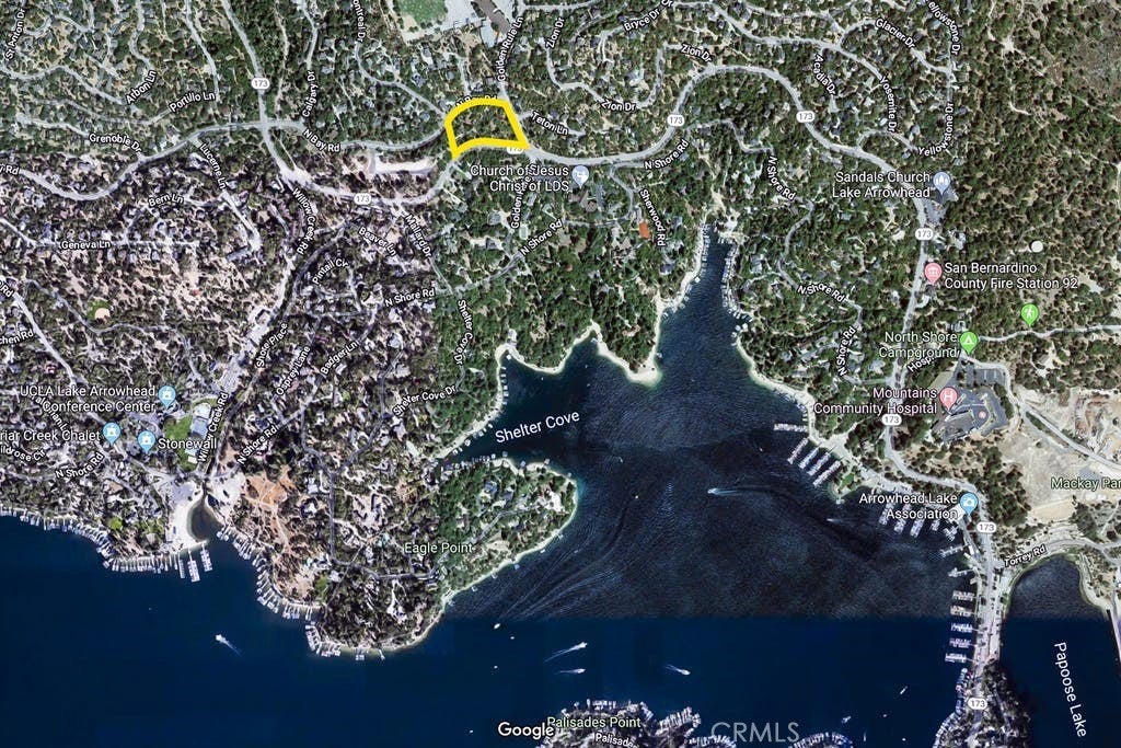 The offering is for a near flat @ 2.58 Acre Lot ZONED COMMERCIAL with LAKE RIGHTS. CLOSE TO THE LAKE and TAVERN BAY BEACH. San Bernardino County Zoning is CN which is Neighborhood Commercial and S.B. Possible uses considered by the County may include a Recycling/Small Collection Facility, Fitness Health Facility, Public or Private Meeting Facility, Live/Work Unit (Live Work calculated area is about 28,096 sqft or approximate 28 units), Bar/Tavern/Restaurant/Coffee Shop, Grocery Store, Place of Worship, Service Station, Child Day Care, Professional Services, Renewable Energy Generation Facility. Buyer to fully satisfy themselves with the County regarding any and all possible zoning considerations. Property runs the length of Golden Rule with frontage on North Bay Road as well as North State Highway 173.