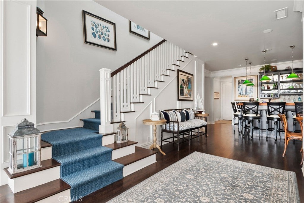Explore life in Newport’s coveted Peninsula Point. This single-family estate is located on the sand beyond the busy boardwalks with views of natural sand dunes and the Pacific Ocean. Upstairs, the master suite offers unobstructed ocean views, Catalina Island views, and simply majestic California sunsets. With over 4600 square feet of living space, this exceptionally appointed, professionally designed four-bedroom, 6 bathroom home is a perfect escape. Downstairs features a modern chef’s kitchen with a built-in six-burner Viking Stove, a Sub-Zero refrigerator, a built-in wine fridge, and a marble backsplash. The ocean-facing dining and living rooms are highlighted by coffered ceilings and a used-brick fireplace. Also downstairs is a generous-sized private bar with a kegerator–perfect for hosting your own happy hours! Outside find a private, ocean-facing patio with BBQ and room for dining al fresco with friends and family. Located just down the street from the surf-famous wedge and Jetty View Park.