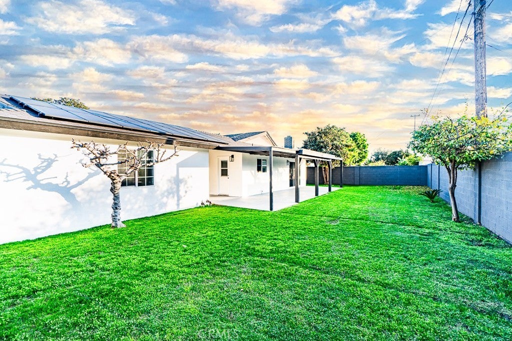 WOW!! Don't miss out on this beautiful, carefully designed gorgeous home nestle in the heart of Anaheim. Conveniently located near freeways, retail stores, 10-15 minutes to Disneyland and minutes to the Block (The Outlets at Orange). This single story home have solar that is already paid off , also an oversize driveway that can park RV or can park up to 6 cars...WOW! As you enter, you will immediately notice all the details that makes this home stand out. Open floor plan, extreme elegant kitchen with recess lights, elegant Calacatt quartz, black stainless steel sink, state of the art stainless steel appliances, white shaker soft self closing cabinets ...definitely a Chef's dream! Master bedroom have walk in closet and ensuite master bathroom with designs that is breath taking. Wait there's more, the hallway bathroom is also just insanely beautiful with exquisite tile designs, modern vanity with beautiful quartz, beautiful fixtures and a tub to soak out all of your troubles on any bad day. Double pane windows, new modern hard flooring throughout. Large covered patio in spacious back yard with block wall fence for privacy..... the list just goes on and on and on....put in your offer now .. will sell fast!!