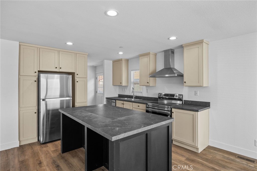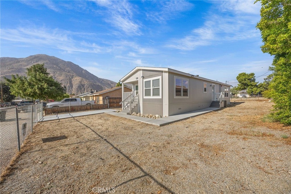 "Back on the market after an long escrow period due to buyer performance issues. **RATE BUY DOWN MAY BE AVAILABLE THROUGH PREFERRED LENDER** Beautiful home is ready for its next owner! "Why settle for renting when you can become a proud homeowner for less than $350K? The picturesque town of Cabazon is experiencing exponential growth, offering a plethora of attractions such as world-famous dinosaur exhibits, the renowned Hadley's Orchards, Desert Hills Premium Outlets, and the exciting Morongo Casino Resort & Spa. Introducing a brand new spacious 3 BR/2 BA DBL wide MFD home. This 1,325 sq. ft.(including covered patio) fully fenced residence boasts a charming porch and a well-designed layout. Enter the home to discover a welcoming living room, a cozy dining area, & a fully-equipped kitchen. The home is adorned with all-new, super energy-efficient appliances, a generously sized kitchen island, & a convenient laundry area. The described features are general & might differ from the specific home.** The kitchen is a culinary enthusiast's dream, equipped w/stainless appliances including a electric range, a Euro canopy range hood vented thru ceiling, Stainless Frig w/a top freezer, a stainless dishwasher, & a sink. The kitchen also boasts an deep 50/50 top mount stainless sink complemented by a brushed nickel high arch pull-down single lever faucet. The windows are white vinyl frames, dual glazed with low E glass, with 2" faux wood white blinds. The flooring consists of luxurious vinyl linoleum, entryways, & all living areas. The exterior of the home showcases Hardie cement fiber vertical siding, and brand new 30 year roof, ensuring durability and a timeless aesthetic. The owner's suite offers a laminate countertop with a square edge and a backsplash, accompanied by a top mount rectangle sink. A large mirror hangs above the double sinks, spacious 60" fiberglass shower w/clear enclosure with brushed nickel fixtures. Guest baths features a similar laminate countertop with a square edge and a 4" backsplash, along with a top mount white china rectangle sink. A mirror is mounted above the sink, and a convenient 60" fiberglass 1-piece tub/shower (without a door, curtain, or rod) is equipped w/brushed nickel fixtures. HOME COMES WITH ONE YEAR MANUFACTURES HOME WARRANTY! The electrical system 200 Amp, an Ecobee self-programming thermostat, and smoke/carbon monoxide detectors.