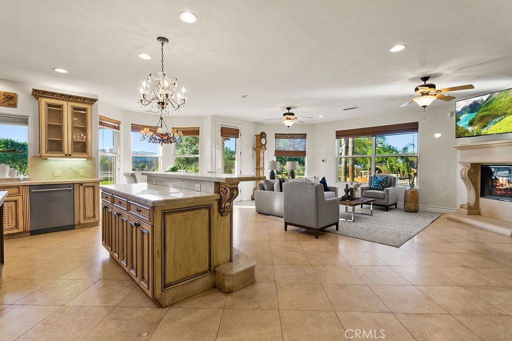 Breakfast Bar, Built-in Features, Breakfast Area, Ceiling Fan(s), Separate/Formal Dining Room, Eat-in Kitchen, Granite Counters, High Ceilings, Intercom, In-Law Floorplan, Open Floorplan, Recessed Lighting, Storage, Entrance Foyer, Main Level Primary, Primary Suite