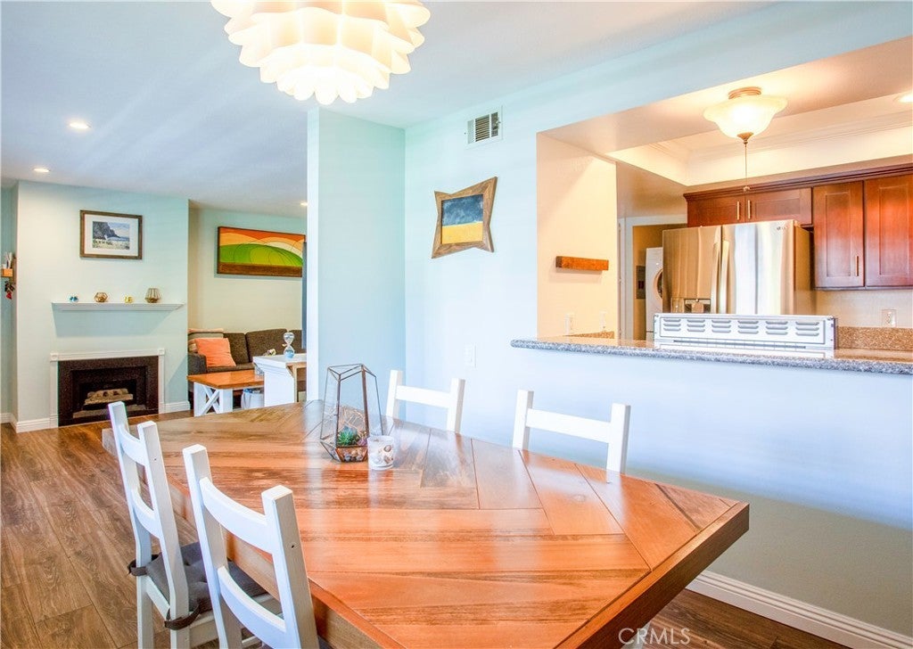 Seller motivated. All reasonable offers will be considered for quick escrow, if necessary. Welcome to the Pier Pointe condominium complex situated in a private, gated community within biking distance of Huntington Beach Pier and downtown Main Street, offering a coastal lifestyle. The community features meticulously maintained landscaping, including beautiful trees, a diverse array of colorful plants, and expansive greenbelt areas. Residents have access to amenities such as a sparkling pool, relaxing spa, clubhouse, tennis court, BBQ areas, and ample guest parking. This beach style condominium comprises two spacious bedrooms with vaulted ceilings and large closets providing ample storage. It includes a full bathroom upstairs and a guest bathroom downstairs. The kitchen is equipped with recessed lighting, a double sink, gas stove, a generous pantry area and indoor laundry. The dining area accommodates a party of six and features adjacent bar seating. The living room fireplace offers a cozy ambiance for cool evenings, while the covered balcony provides an ideal space to enjoy summer days with an expansive view of the trees and illuminated green belts below. Recent upgrades to the property include new carpeting and baseboards in both bedrooms, fresh paint, and a brand-new central furnace. Additional improvements consist of newer laminate flooring, updated staircase skirts and risers, granite countertops, custom cabinetry in the kitchen, plantation shutters, and recessed lighting throughout. The property includes two dedicated parking spaces: a detached one-car garage and an open parking space directly in front of the garage. Homeowners Association (HOA) dues cover water, trash, sewer, Spectrum High Speed Internet cable, and Disney+, valued at approximately $200 per month. Buyers are encouraged to verify HOA dues and any associated savings. Information provided is not guaranteed by the seller. Seller motivated. Reasonable offers will be considered for quick escrow.