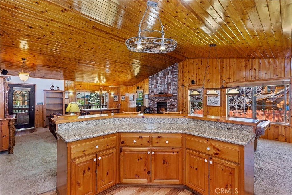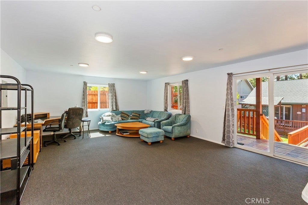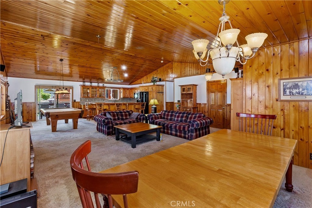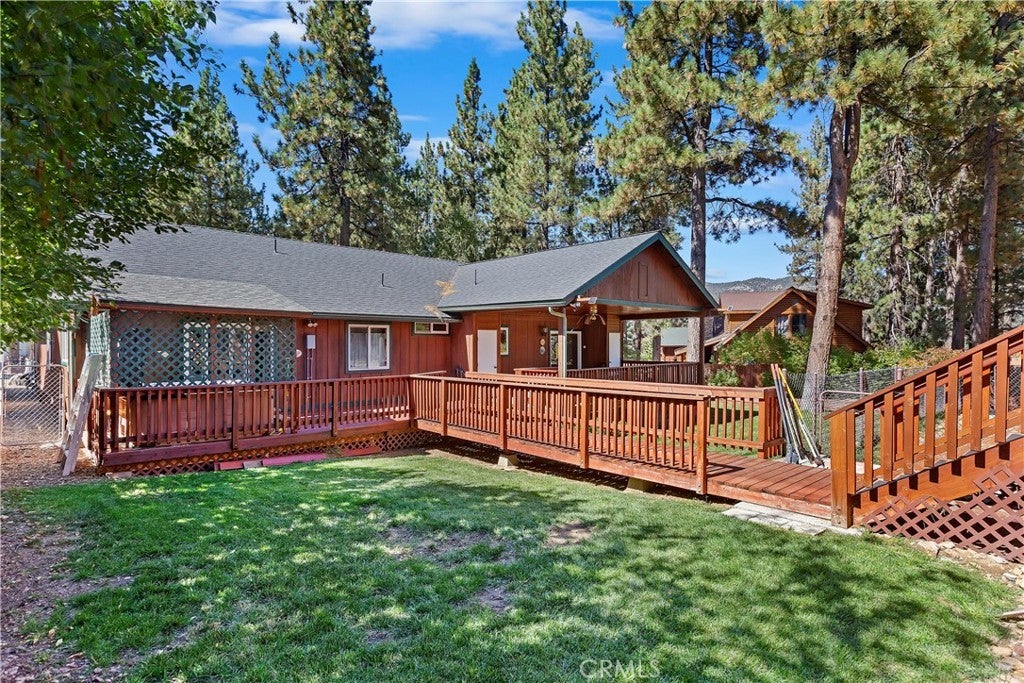 Gorgeous one story 3 bed 2 bath + 2 car garage log style home featuring a second building with DREAM GARAGE of 1344 sq ft plus 2 detached guest bedroom suites! Main house has 1983 square feet plus guest suites each w/ 572 sq ft for a total living space of 3132 square feet. Do you have "toys"? The second garage is awesome w/ room for a huge RV, boat, car, jet skis, you name it!. The RV garage has a separate entrance from Alp Ct as well as walking entrance from the back yard. Features include a Generac generator for both house, garage & guest suites. Both buildings have tankless water heaters AC including garage & guest suites. Large garage is heated with electric remote control skylights. The separate guest suites are prepared with sink /water connections for a future kitchenette & 20amp outlet GFI for a microwave. Alp Ct. building has additional washer dryer hookups. Each guest suite have separate entrances, bathrooms & their own decks. Possibilities abound w/ this amazing property! Use a guest suite as a game room or office? The gigantic lot is fully fenced for pets and kids with beautiful views. The main house has a cathedral ceiling greatroom, kitchen w/ gleaming wood floors, and timeless granite. The spacious master suite has slider to the deck and outdoor spa. Property has been meticulously maintained with fresh exterior and interior paint. Nothing in Big Bear compares to this awesome and unique residence w/ fabulous garage!Boat dock at Pine Knot Marina can be included