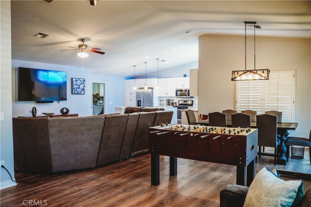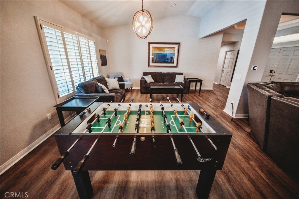 Come relax in a fully furnished renovated, open concept home on the golf course. Close by Coachella and Palm Springs. Not just another spot in the desert...The Bogart is on over a 1/4 acre lot, has a private pool, multiple seating areas, two fire pits, full game room and sits in the Indian Palms Country Club. Relax under the misters in the backyard, watch the golfers strike the ball, come play in the heated / cooled pool, watch a movie on the 85" big screen or sports on the two 65" TVs in the game room. The space Over 2400 square feet (including built out garage) all on one level of living space is available for use. You'll love the wide open feel of The Bogart, with the kitchen as one of the main focal points. While you're cooking, you can watch the latest movies or games on the 85" TV and share in the experience with others. Cheer on your favorite teams as they go head to head. The foosball table in the living area is centrally located so all can enjoy. There is also another lounge in the living room for you to relax. You can watch your friends swim in or just lounging by the pool or relaxing under the umbrella or overhang with the misters to keep them cool. You can also see others BBQing it up outside and having a great time at the huge outdoor island enjoying their favorite beverage. Huge grassy area outside keeps the ground cool under foot while playing a round of cornhole. The bedrooms inside are just as nice. Each room has a smart big screen TV if you want to get away from all the festivities. There are multiple board games in the bunk bed room and the young ones can even attach their Nintendo switch to the big screen in the room as well. Other things to note Golf cart is not available for use. All utilities are responsibility of tenant For short term lease, (less than 6 months), $150 of utilities will be credited to tenant. Anything above $150 is responsibility of tenant.