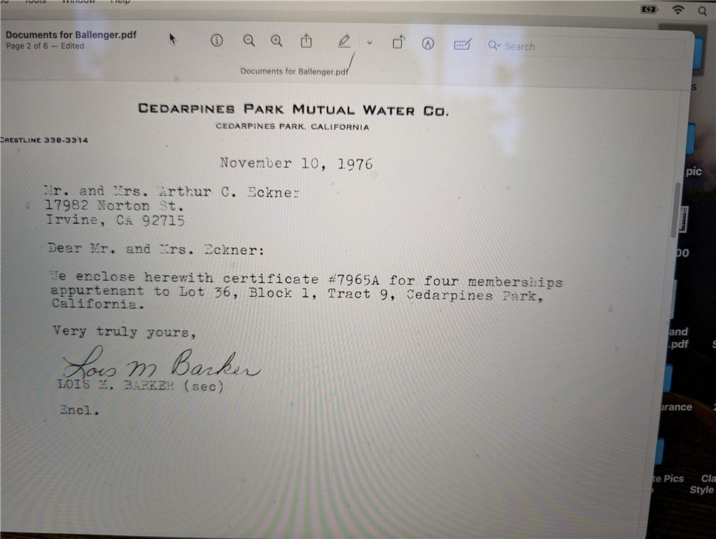Land has 4 water shares from the CedarPines Park Mutual Water Co, 909-338-1821. No new water shares are being issued. .224 acres. APN: 0342-081-18-0-000. Legal Description: TR NO 1896 CEDARP1NES PARK NO 9 JOBS PEAK LOT 36 BLK 1. Coordinates: 34.260061, -117.329713. Pictures provided may not necessarily reflect its current condition. Street number provided is the APN # O342*. There is no current address other than property is off Ballenger.. Natural Hazard Summary, Tax Summary Available and survey under Supplements email to request copies.