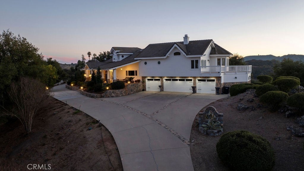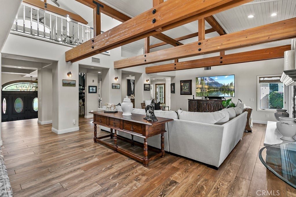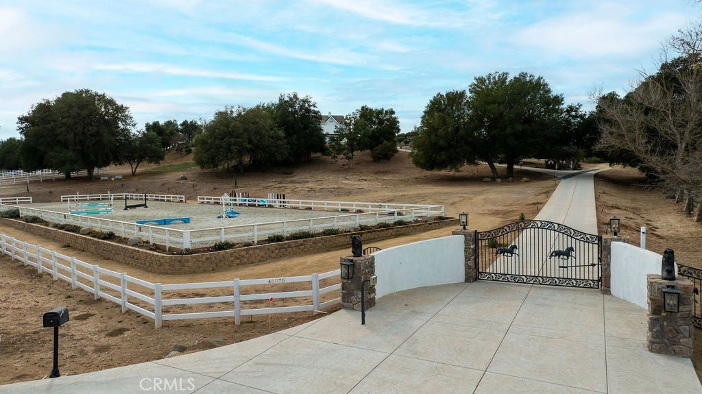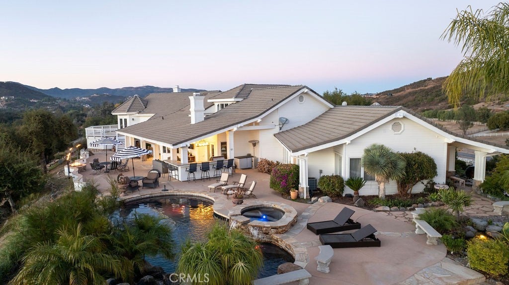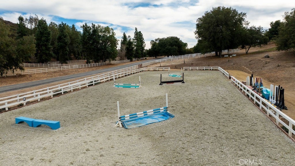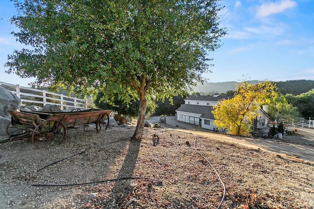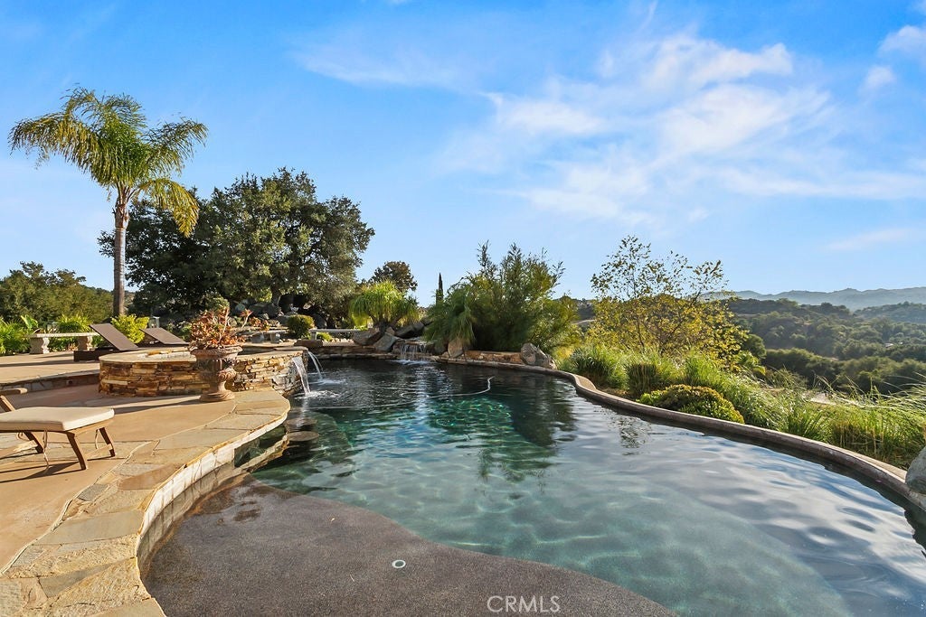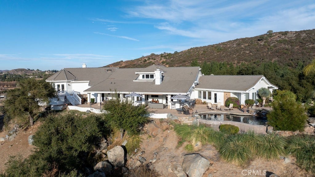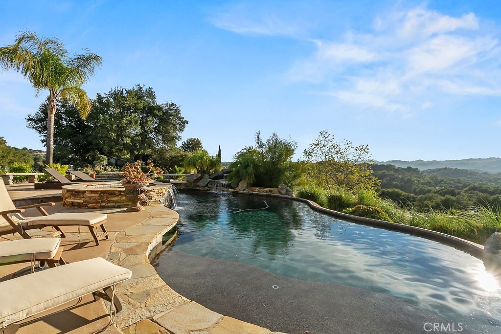 Stunning one of a kind equestrians dream “ view” estate. just over an hour to Orange County and North San Diego. Enter through impressive gated entry up long private driveway. The estate is set up for the professional trainer or personal equine client . Two arenas, one GGT footing, the 2nd arena sand. Round pen, 8 turn outs, 6 with natural oak tree shade, waterers, some grass, white vinyl fencing. Centre Aisle 6 stall barn,auto waterers, fly system, cameras, rubber matting, lookouts, additional 3 stalls, grooming/bathing area. Tack shed and more. The estate has its own shaded riding trail and also access to many miles of riding trails within the area. Small Cabernet Sauvignon vineyard, corn hole and Bocci Ball court ,adjoining gazebo viewing area. Multiple sitting, viewing areas. Expansive Chicken “house”, Italian garden, Zen/prayer area. Many established oaks drape the property with shade and beauty. Three apartment/studios in the barn, parking for multiple vehicles, two automatic security gates.Shade trees, fruit trees and several entryways. Basically Single Story sprawling residence is recently updated with amazing gourmet kitchen with huge center island,2 dishwashers. gas stove, double ovens built in refrigerator and large pantry, opens to grand great room with seoaring ceilings, hand crafted beams, and crackling fireplace, French doors, views from every window. Primary bedroom, 2 walk in closets, fireplace, soaring ceilings and sitting area. Primary bath is stunning , 2 auto toilets, fireplace, romantic tub, grand shower area. Formal dining area has a wall of cabinets and storage with French doors to large patios, formal living area could be a game room or huge office with a wall of bookcases and storage, a bar area and more. Unique Théâtre room has professional seating for 7/8 people. Spacious Secondary bedrooms One with en suite bath and access to the idyllic Koi pond and fountain area. Just one upper viewing room/office/library. Stunning entertainment area with expansive deck, fire pit, fire lights, sparkling spa, infinity pool has waterfall, swim up bar. State of the art outdoor kitchen with t.v. large counters, sit up bars, heater and stainless appliances., BBQ, refrigeration drawers, hot plates/storage area. Outdoor shower, Well ,Koi pond, second fire pit. Spacious three car garage, epoxy,flooring, huge attached storage room, large motor court, drive through road to barn. Several access roads, gates throughout property.