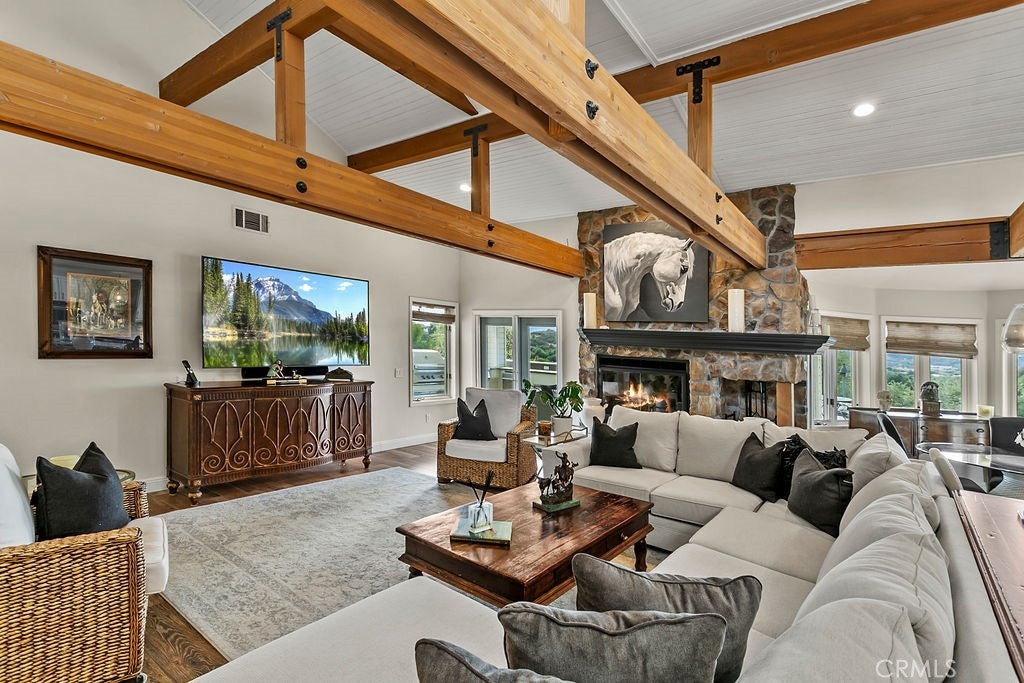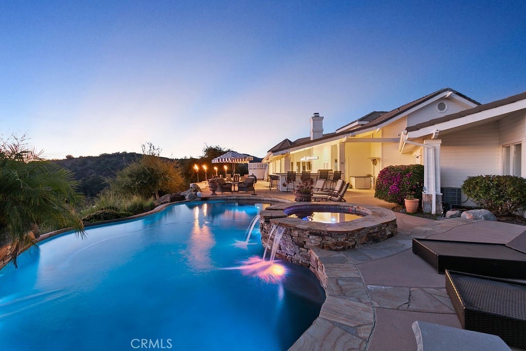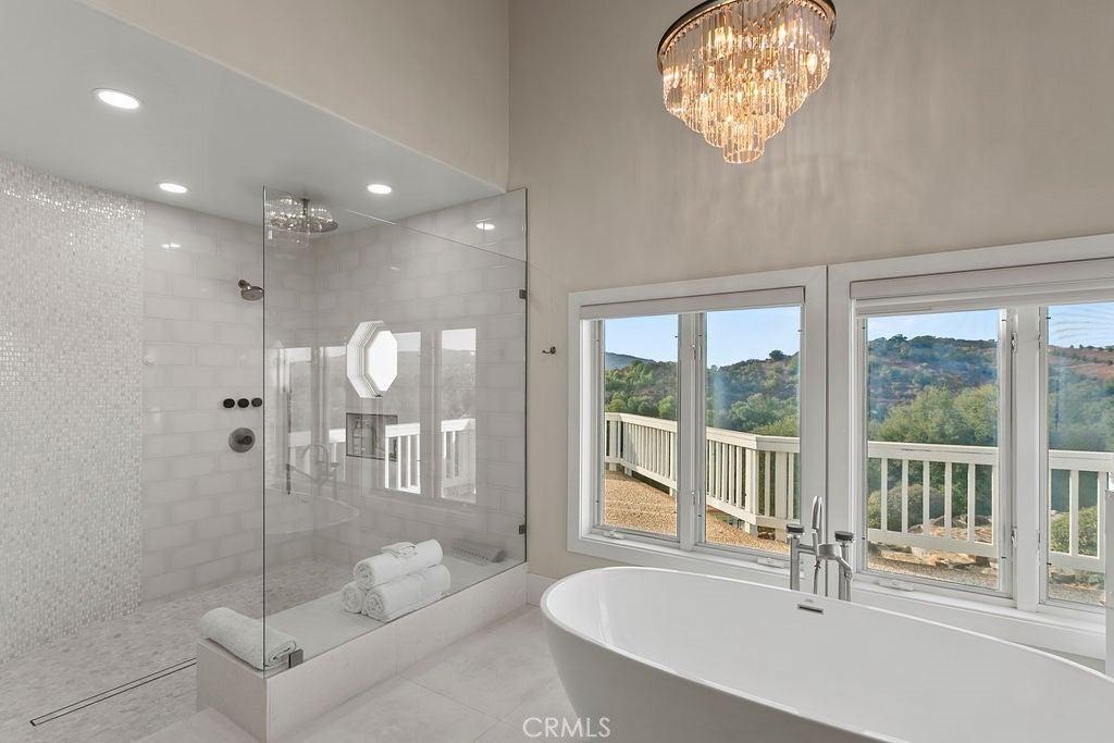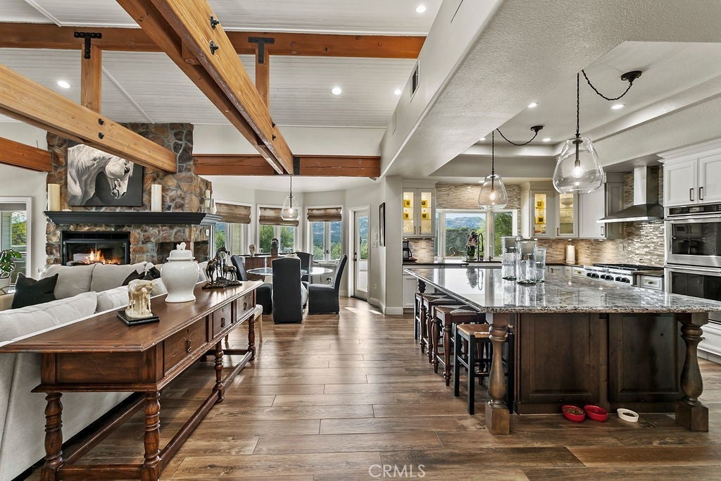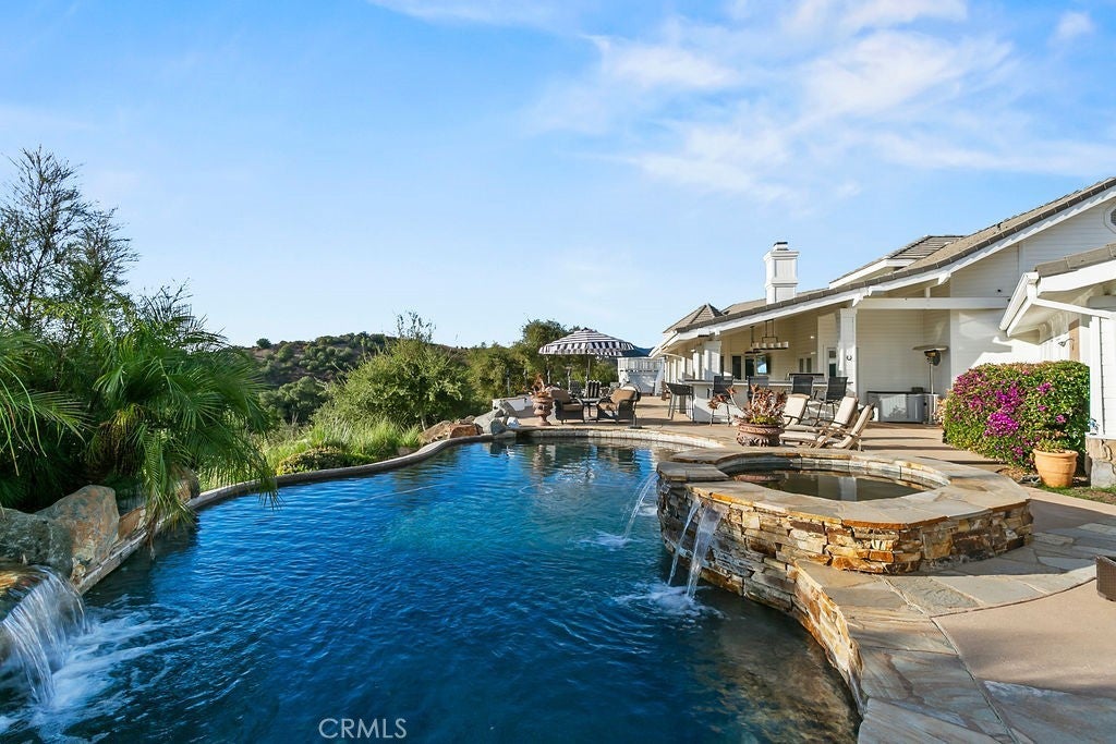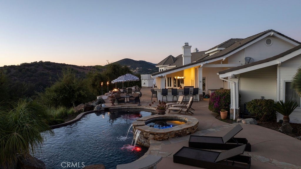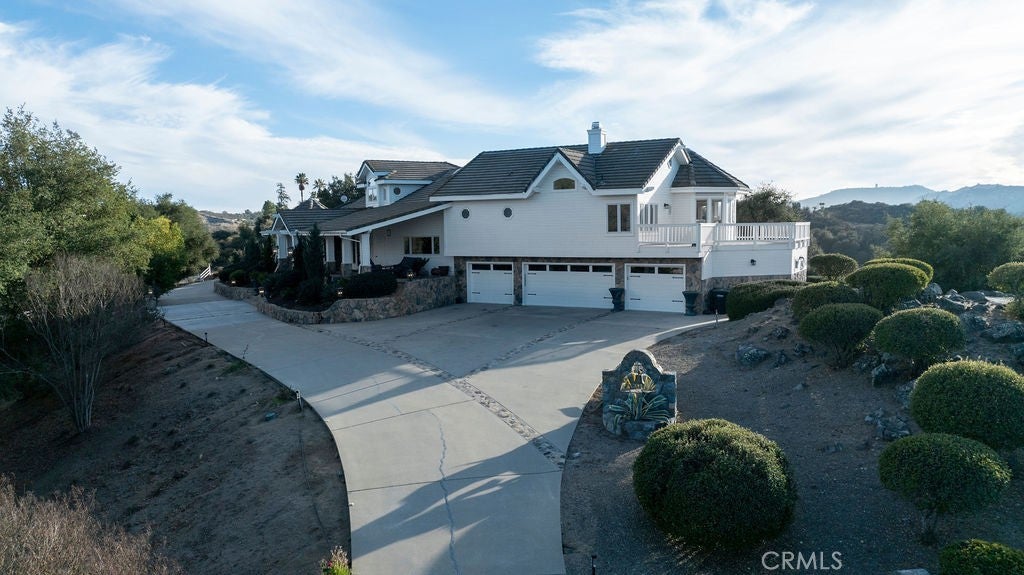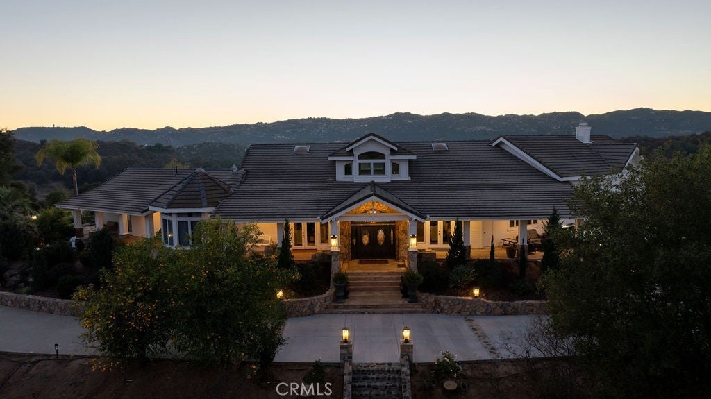 Stunning one of a kind equestrians dream “ view” estate. just over an hour to Orange County and North San Diego. Enter through impressive gated entry up long private driveway. The estate is set up for the professional trainer or personal equine client . Two arenas, one GGT footing, the 2nd arena sand. Round pen, 8 turn outs, 6 with natural oak tree shade, waterers, some grass, white vinyl fencing. Centre Aisle 6 stall barn,auto waterers, fly system, cameras, rubber matting, lookouts, additional 3 stalls, grooming/bathing area. Tack shed and more. The estate has its own shaded riding trail and also access to many miles of riding trails within the area. Small Cabernet Sauvignon vineyard, corn hole and Bocci Ball court ,adjoining gazebo viewing area. Multiple sitting, viewing areas. Expansive Chicken “house”, Italian garden, Zen/prayer area. Many established oaks drape the property with shade and beauty. Three apartment/studios in the barn, parking for multiple vehicles, two automatic security gates.Shade trees, fruit trees and several entryways. Basically Single Story sprawling residence is recently updated with amazing gourmet kitchen with huge center island,2 dishwashers. gas stove, double ovens built in refrigerator and large pantry, opens to grand great room with seoaring ceilings, hand crafted beams, and crackling fireplace, French doors, views from every window. Primary bedroom, 2 walk in closets, fireplace, soaring ceilings and sitting area. Primary bath is stunning , 2 auto toilets, fireplace, romantic tub, grand shower area. Formal dining area has a wall of cabinets and storage with French doors to large patios, formal living area could be a game room or huge office with a wall of bookcases and storage, a bar area and more. Unique Théâtre room has professional seating for 7/8 people. Spacious Secondary bedrooms One with en suite bath and access to the idyllic Koi pond and fountain area. Just one upper viewing room/office/library. Stunning entertainment area with expansive deck, fire pit, fire lights, sparkling spa, infinity pool has waterfall, swim up bar. State of the art outdoor kitchen with t.v. large counters, sit up bars, heater and stainless appliances., BBQ, refrigeration drawers, hot plates/storage area. Outdoor shower, Well ,Koi pond, second fire pit. Spacious three car garage, epoxy,flooring, huge attached storage room, large motor court, drive through road to barn. Several access roads, gates throughout property.