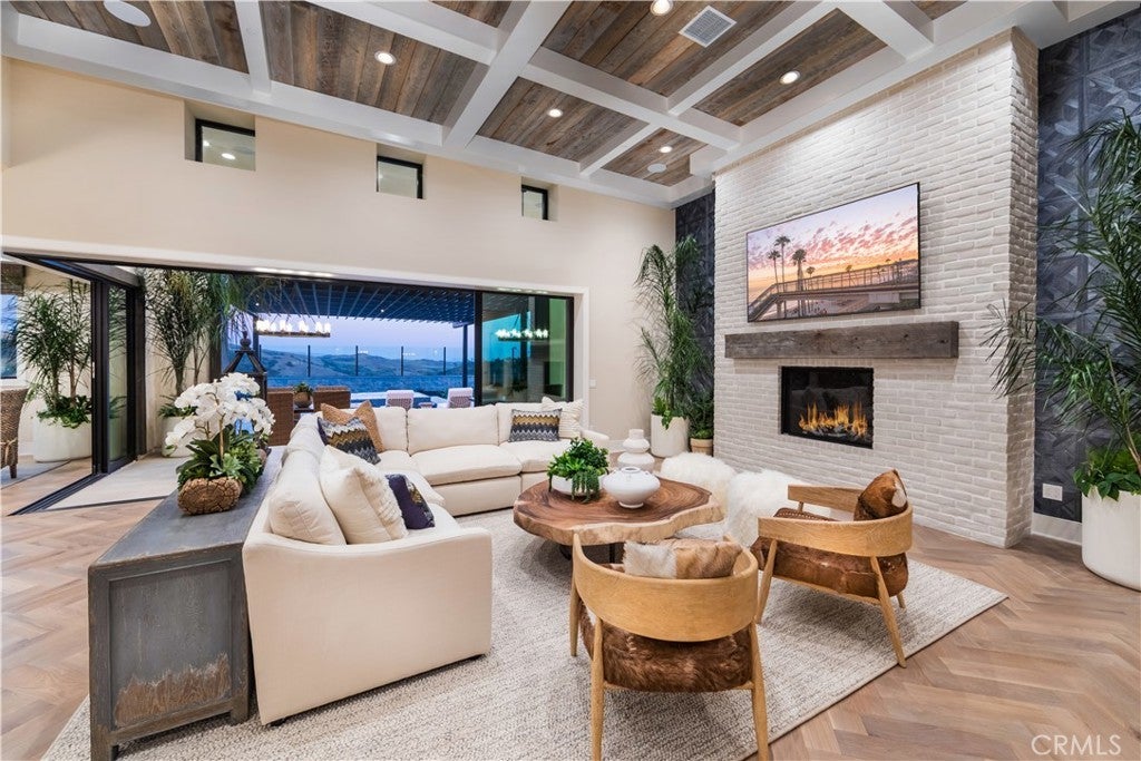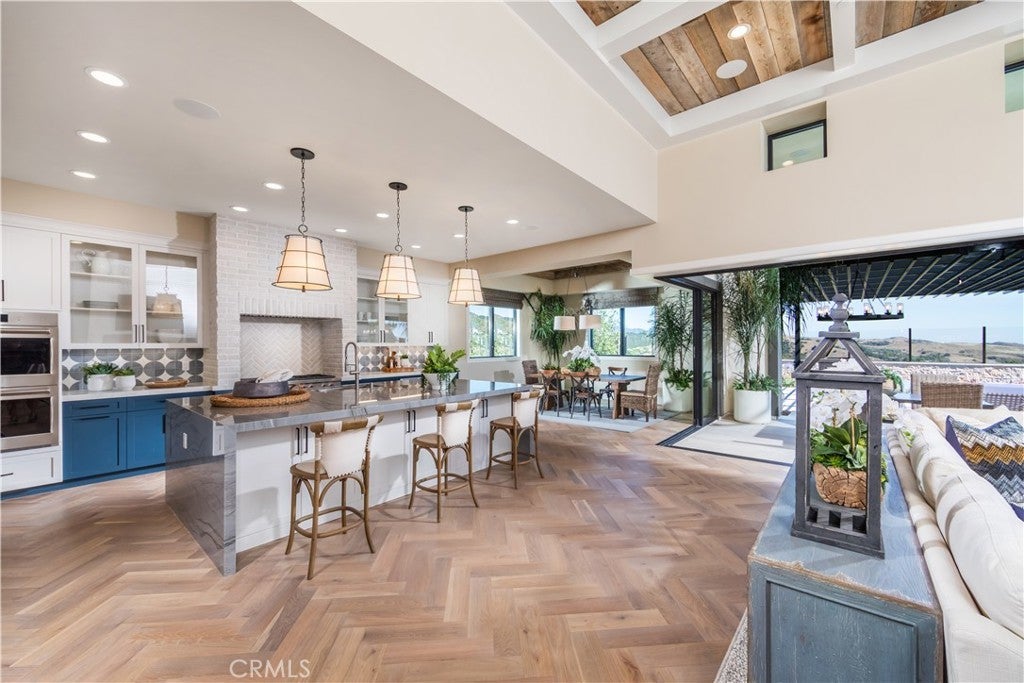 SINGLE STORY LIVING - SUNSET & CITY LIGHT VIEWS- END OF CUL-DE-SAC LOCATION, 17,000 sf+ POOL SIZED LOT and NEW CONSTRUCTION within GATED Saddle Crest community. Finished with thousands in designer selected finishes, this price includes folding glass doors, fireplace in great room, upgraded cabinets, waterfall quartz island plus designer selected countertops and surrounds in each bath. Hardwood floors in the great room, kitchen, office and primary bedroom, gorgeous custom Calacatta Umber marble and wood entry floors, and upgraded tile flooring in bathrooms and oversize laundry room. Semi-custom construction with the highest standard of living for the discerning home buyer, like casement windows, his and her closets in the primary room. The amazing gourmet kitchen with designer selected split finish kitchen full box with self closing cabinets, island with sink, breakfast bar, quartz countertops with full tile backsplash, two dishwashers, 72 inch refrigerator, Wolf gas range and oven, huge walk in pantry, plus a casual dining and formal dining room. The primary suite includes a huge, spa inspired shower & soaking tub plus two huge walk-in closets. This home has a full lock off casita with kitchenette, with it's own en-suite bedroom & bath with a large walk-in shower and generous walk-in closet. This home is under construction for a Fall move-in. Homebuyer can select their own flooring through our design center prior to completion. Homesite 48 is perched on a hill with a large 17,000+ square foot yard is waiting for you to design your dream landscaping, big enough for a pool and more. Saddle Crest is a gated community of only 65 luxury residences off of Santiago Canyon Road with sweeping views of Orange County. Close to everything but ideally located for tranquility. Pictures are of former model home