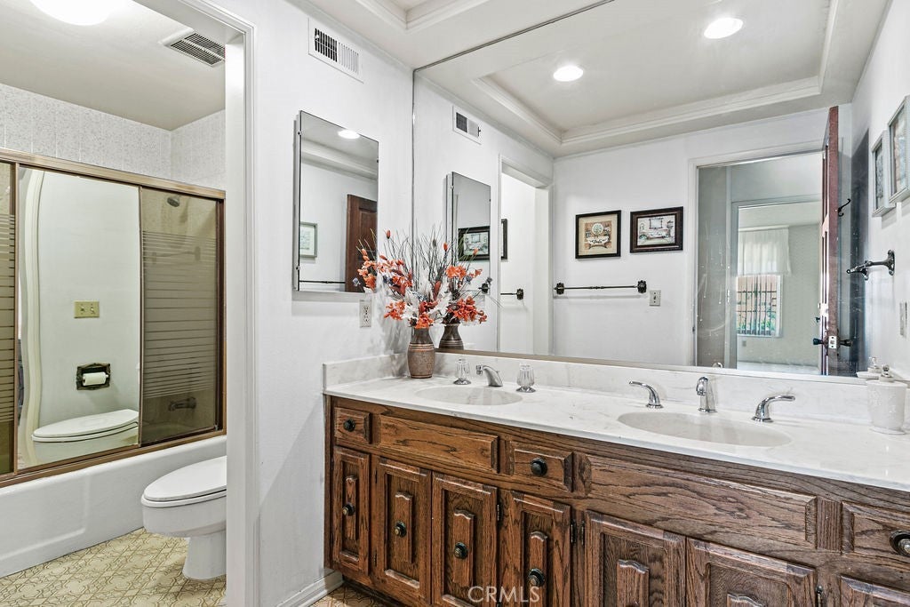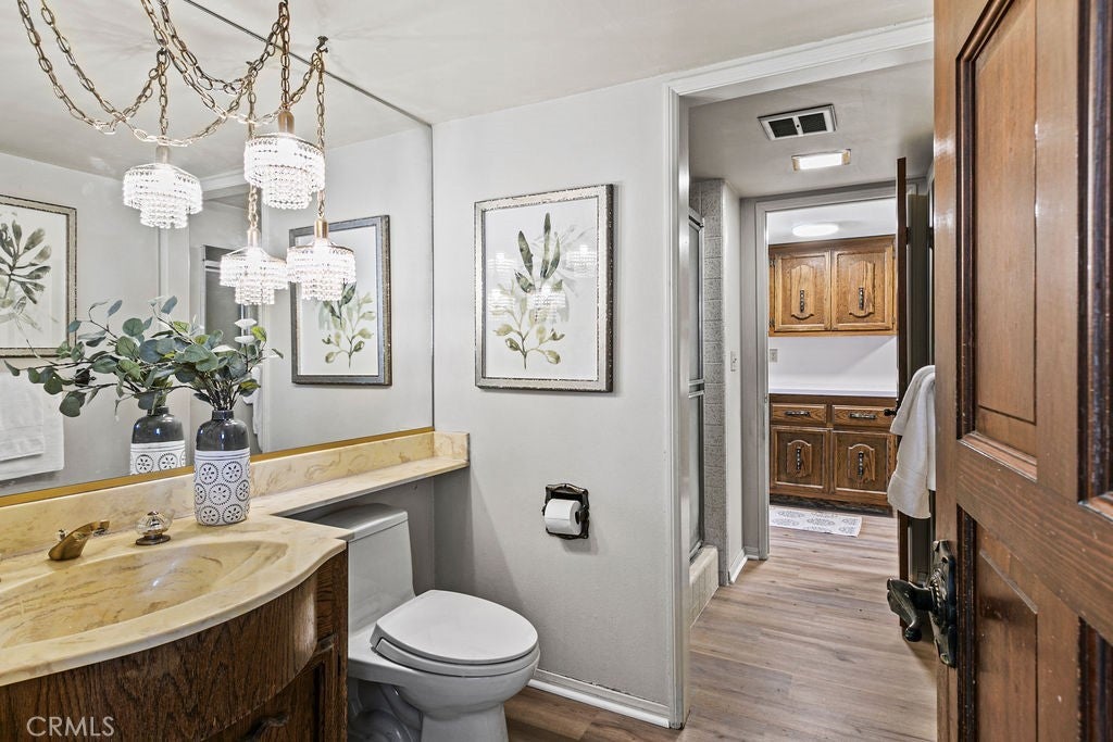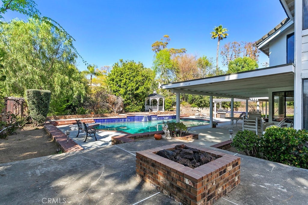 Situated in the coveted rolling hills of Villa Park, this commanding estate sits at an elevated position to the street and exudes the timeless elegance of a time past. In the same family for nearly 4 decades, this timeless traditional styled home is ready for the next buyer to bring it back to its former glory. Perched atop an elevated lot, this home screams potential for a truly impressive elevation and curb appeal. This 5 bed, 4 bath estate boasts nearly 4000 square feet of living space, a spacious traditional floorplan, and large entertaining styled backyard. Enter through lead glass inlaid front doors w/ elegant sidelights into a spacious entry and show style living room. Living room is huge with large windows letting in tons of light. Living room is open concept with the dining room giving a large spacious feel and easy entertainment space for those cherished holidays. Kitchen is dated but locationally perfect, with easy access for dining room serving, rear located for easy vision to the backyard and sprawling pool, and direct proximity to the family room. This kitchen is the central hub of the downstairs floorplan. The family room is rear floorplan located and has easy access to the entertaining styled backyard. Huge window walls give full line of site to the entire yard. Framed with an antique brick fireplace, wood paneled walls, exposed wood beams, and natural wood styled mantle, this room exudes the rich and elegant finishes of the period it was built. HUGE bonus room feels so nostalgic. Floor to ceiling brick finished fireplace wall, w/ wood stacking cove, built in bar, wood paneling, window wall, and billiards table reminds one of the fun this room would have been. This floorplan has a DOWNSTAIRS BEDROOM with easy downstairs bath access. Spacious laundry and three car garage are also big benefits. Upstairs one finds the primary bedroom and bath. The primary is sprawling, with corner windows that allow plenty of light to flood in. Primary bath is spacious with room to renovate. Secondary bedrooms are spacious, and hall bath is also ready for a facelift. Space for dual vanity sinks, tub and shower, and water closet make this a larger than normal space with plenty of potential. Backyard instantly reminds us of a simpler time, with HUGE covered patio for those lazy summer days. There is plenty of grass for room to run, large pool and elevated spa, lush but overgrown mature landscape, fire pit, gazebo, dog run, and swing set. Call for more details!