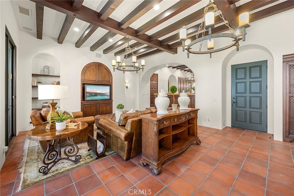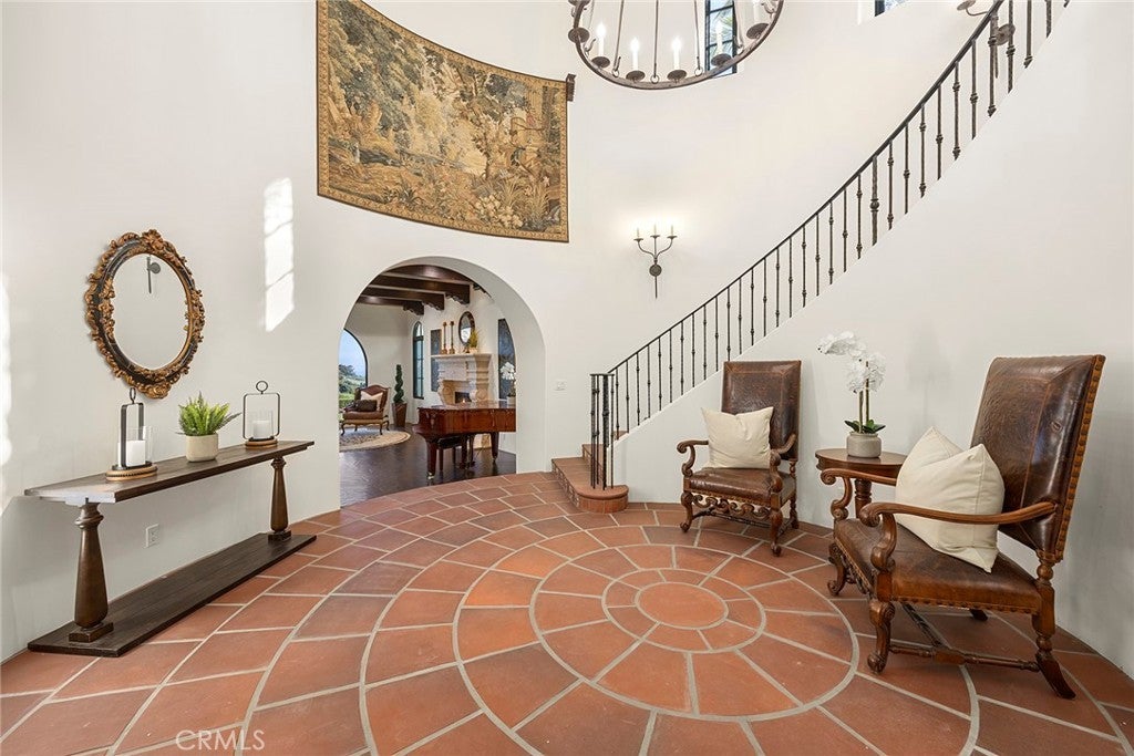 Nestled serenely on the front row, this extraordinary estate commands an elevated position, gifting panoramic vistas that stretch across the expanse of the Pelican Hill Golf Club and beyond, where the azure ocean meets the sky. Encompassing over 7,900 square feet of opulent living space, this residence is a testament to boundless luxury with a distinctive coastal essence. Set within the prestigious confines of an around-the-clock guard-gated community, this property ensures the utmost privacy and security. Adding to the allure is the convenience of an elevator, seamlessly connecting all three levels of the residence. A picturesque embodiment of resort-style living, the custom design of this remarkable home encompasses 5 lavish Bedrooms, 7 Full Bathrooms, and 2 Half Bathrooms. The grandeur is accentuated by the presence of a separate front casita, offering privacy and versatility. A tranquil private courtyard welcomes you, setting the tone for the lavish experience within. The outdoor expanse unveils an oasis of relaxation, complete with a glistening pool, an invigorating spa, and a barbecue area where al fresco dining is an art form. The sweeping views of the golf course merging with the vast ocean create an ever-changing backdrop, enriching each moment spent here. This residence is a symphony of indulgence, exemplified by its offerings of a subterranean 6-car parking garage spanning 1,300 square feet, an upper-level direct access 2-car garage, a wine room for connoisseurs, an intimate theater for cinematic experiences, a well-equipped gym for wellness pursuits, and a soothing sauna for moments of respite. Drawing inspiration from the famed architect Wallace Neff, the residence exudes an air of timeless elegance. Graceful archways and hand-carved beam ceilings adorn the interior, while hand-fired terra cotta flooring graces the floors, each element meticulously chosen to define luxury living. Set within the renowned 504-acre enclave of Pelican HillĀ®, this home enjoys privileged access to a world of unrivaled coastal beauty. A sanctuary of privacy and seclusion, this community is a testament to refined living, offering a retreat where family and friends gather to create lasting memories. Seize the opportunity to live amidst architectural excellence, surrounded by lush landscaping, and awaken each day to unparalleled vistas. This estate represents the epitome of luxury living, where classic sophistication meets the tranquil allure of coastal living.