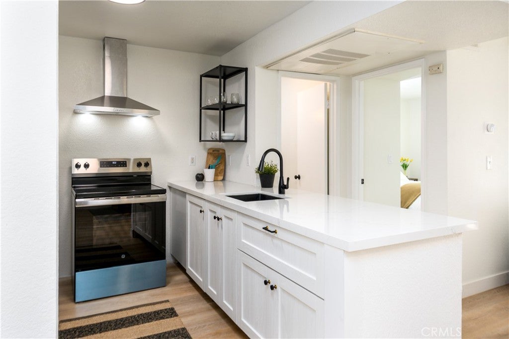Charm meets convenience in this delightful abode! Step into warmth and comfort as you enter this open-concept living space. Modern remodeled kitchen with a quartz countertop, stainless steel stove and range hood. Spacious bathroom with built-in cabinets. Bedroom gets plenty of natural morning light. A one bedroom and one bathroom end unit condominium. Vinyl plank flooring, interior laundry hookups, 2 subterranean assigned parking spaces. This gated community includes recreational room, BBQ areas, spa, and a sparkling pool perfect for summer days. Homeowner association fee covers water, trash, grounds maintenance and insurance. The neighborhood offers eateries, parks, bike trail, and cultural hotspots. Close to major freeways and the nearby Metro light rail takes you to airport and Downtown Los Angeles. The community offers the ideal blend of suburban living and urban accessibility. Schedule a viewing today!
