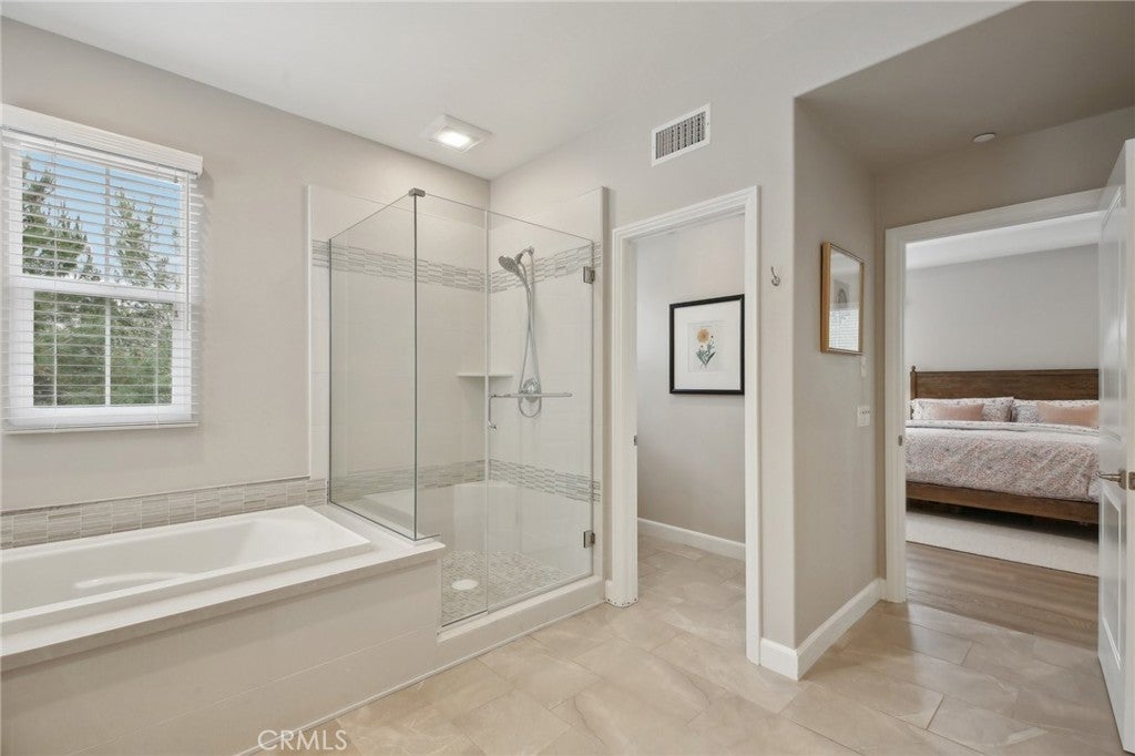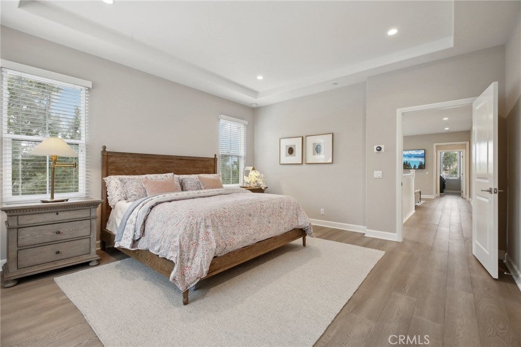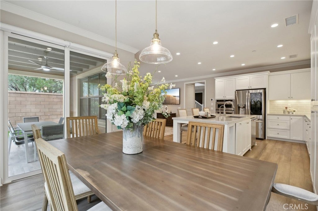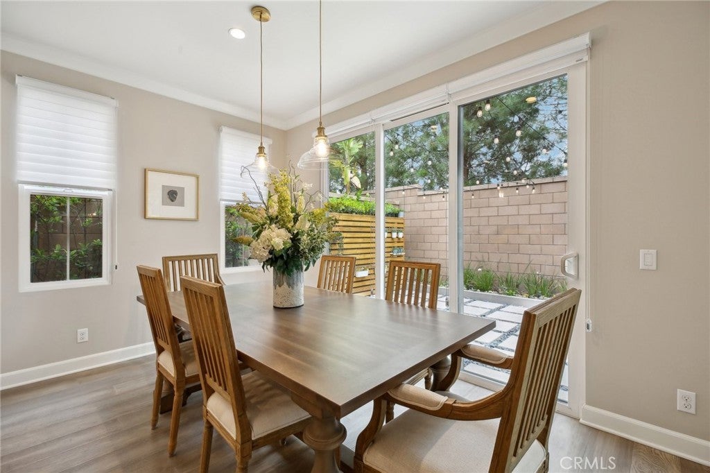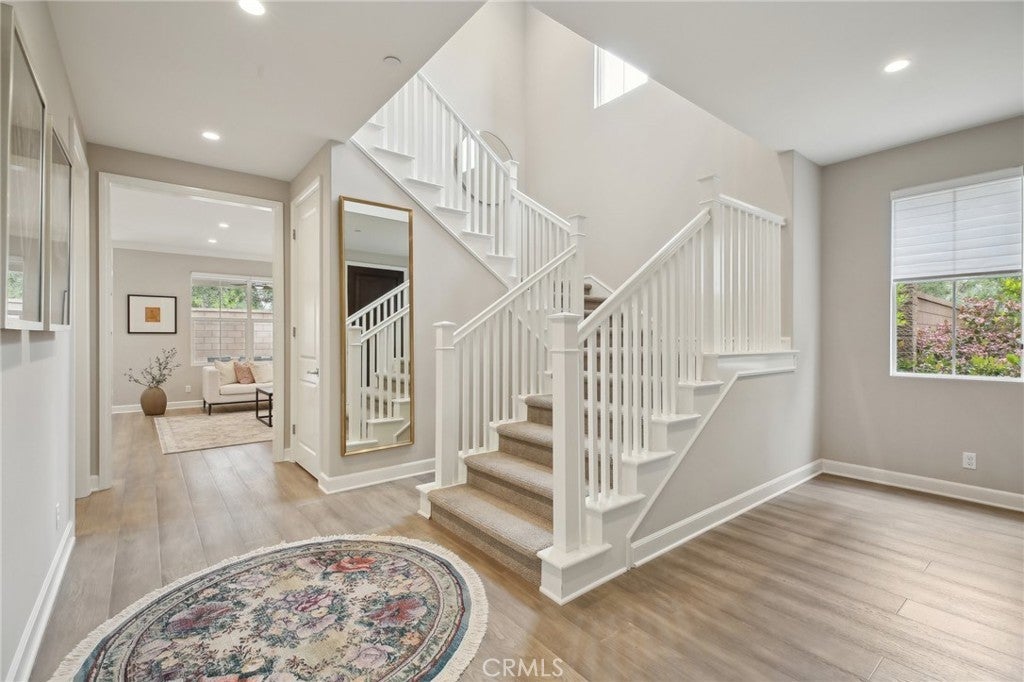 THIS ONE HAS IT ALL — A RARE GEM ON A PEACEFUL, PRIVATE CORNER LOT! Step into this spectacular, turn-key single-family home nestled on a rare corner lot in the highly sought-after community of Eastwood. Boasting four spacious bedrooms, four luxurious bathrooms, and a generous loft, this home perfectly blends elegance, comfort, and functionality. The thoughtfully designed floorplan features a versatile first-floor bedroom or office with an adjacent full bath, ideal for guests or a private workspace. Upstairs, each of the three bedrooms includes its own en-suite bathroom, offering unparalleled privacy and convenience. The light-filled living room seamlessly integrates indoor and outdoor living, creating the perfect space for both entertaining and everyday relaxation. The gourmet kitchen, upgraded by the builder, is a chef’s dream — complete with a large center island topped with Caesarstone quartz, custom tile backsplash, high-end stainless-steel appliances, upgraded cabinetry, elegant flooring, and modern designer paint throughout. Luxurious details continue throughout the home, including rich wood flooring and custom window treatments. The primary suite offers a peaceful retreat with a spacious walk-in closet, dual vanities, a deep soaking tub, and a separate walk-in shower. Step outside to the beautifully landscaped backyard — a private oasis perfect for outdoor gatherings, morning coffee, or evening relaxation. Located in the vibrant community of Eastwood, residents enjoy resort-style amenities, including two pools, a clubhouse, playgrounds, and multiple sports courts. With easy access to Jeffry Trail, top-rated schools, shopping, dining, and major freeways, this home truly has it all. Don’t miss this rare opportunity to own a home that combines luxury, privacy, and location — it’s sure to impress!