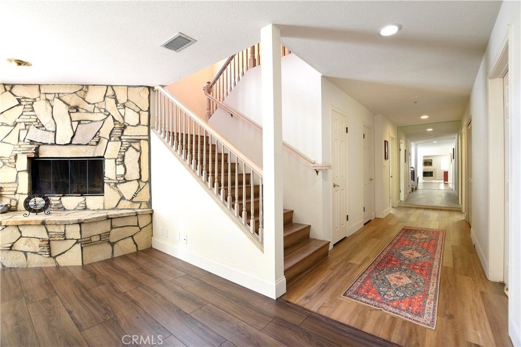 Welcome to 1525 Bonnie Jean Lane, one of the most beautiful and tranquil properties in La Habra Heights. Situated on a flat 40,844 sq ft lot on a highly desirable street, this private estate offers an incredible opportunity. As you enter through the gated, tree-lined driveway, you'll be greeted by a park-like setting with lush landscaping and expansive, flat grassy areas. This stunning retreat features 5 bedrooms and 3.5 bathrooms, perfectly blending functionality and luxury in a private, secluded setting. The property is ideally situated with both a front and back yard, ready to be utilized to your desire. The beautifully manicured front yard leads to a spacious, flat backyard surrounded by trees and vegetation, ensuring complete privacy. Touring the grounds, you'll experience a sense of peace and serenity, perfect for outdoor entertaining or simply enjoying the California sunshine. Inside, the inviting family room with a cozy fireplace flows seamlessly into the living room, which also features a fireplace, and the dining room. The primary suite bathroom has been updated with new flooring, paint, countertops and fixtures, and the kitchen has been updated with new countertops, flooring, and fixtures. It is equipped for a gourmet chef, with ample cabinetry, a dishwasher, gas and electric stoves, and under-cabinet lighting. The home offers two primary suites: one downstairs and one upstairs. The upstairs suite is a true sanctuary with a balcony overlooking the park-like grounds, a grand bathroom with dual vanities, a large shower, a jetted spa tub, and a large walk-in closet. Additional features include fresh paint throughout, a three-car garage with direct access, and extra parking space suitable for an RV, boat, or additional vehicles. From Bonnie Jean Lane, you'll also have quick access to shopping centers, stores, and restaurants.