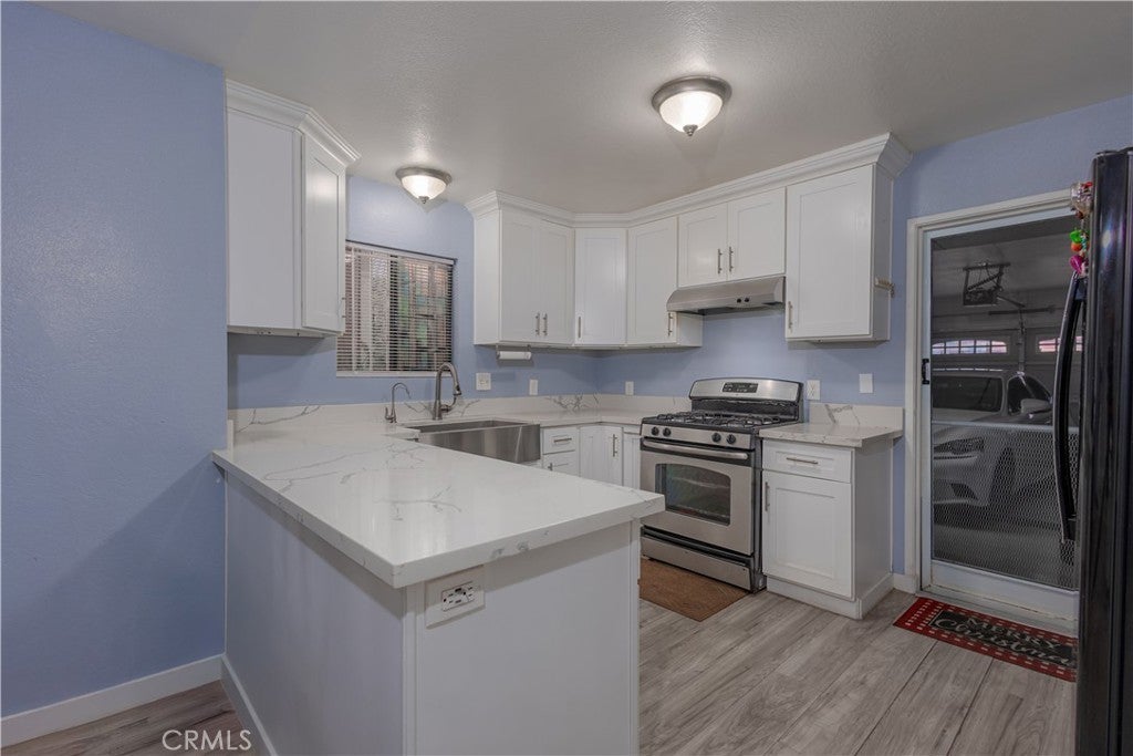 Welcome to your stunning Condominium move-in ready. This beautiful and cozy home features 3 Spacious Bedrooms & 1.5 Baths. The Living Room has an open space concept with Large Windows and Brand-New laminate flooring. Master Bedroom has plenty of Closet space and connects to Bath with a Large Vanity Countertop & Stand-Up Shower. As you make your way out from the Master's Bedroom, Offers a Large Private & Covered Balcony Room for Relaxation. The 1 Car Garage has Direct Access to the Newly Remodeled Kitchen, Quartz Countertops, Custom Cabinets & Pantry, Ceiling Fans with Lights Throughout, Beautifully Laid New Flooring, Baseboards, In Home Laundry Room. The Front Fenced and Covered L Shape Patio. This condominium is Minutes away from Schools, Fwys and shopping center and Markets...