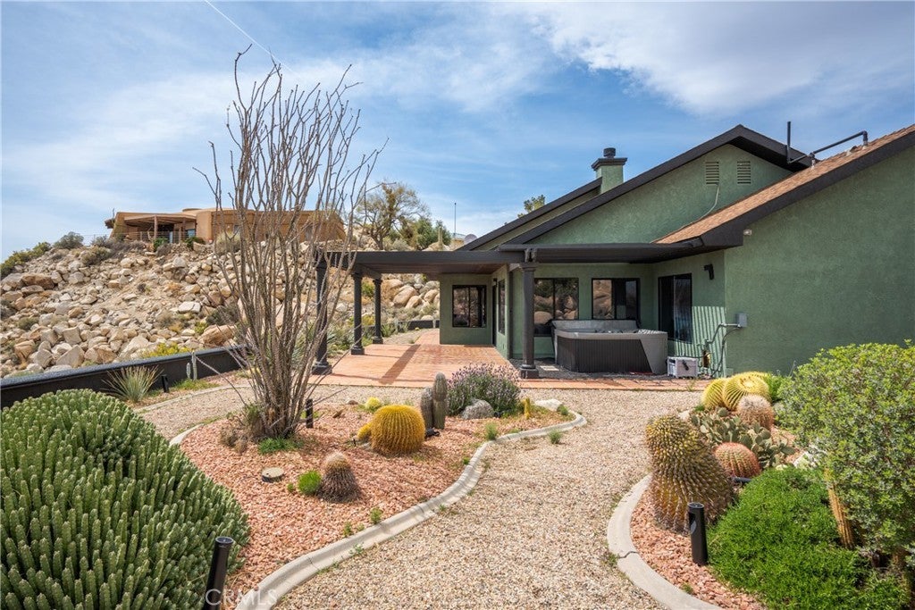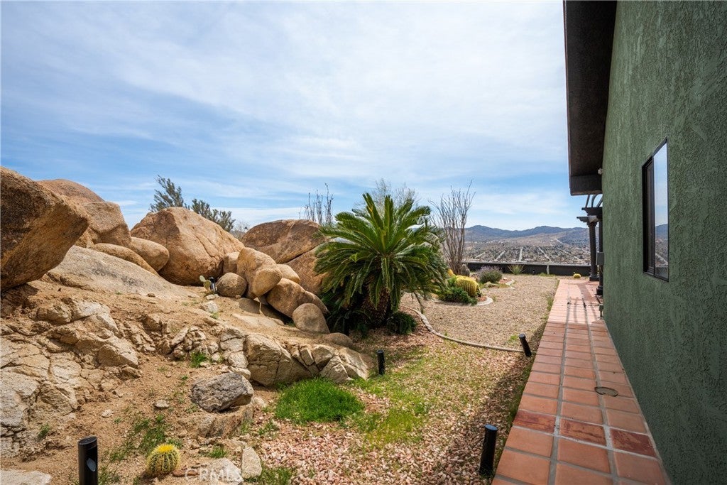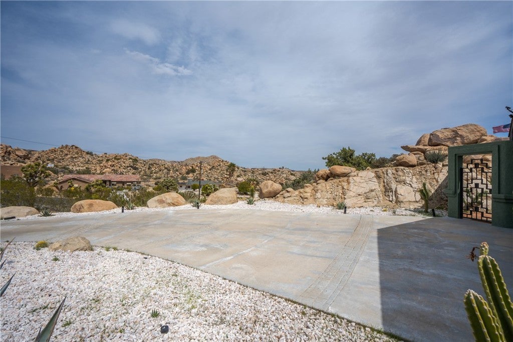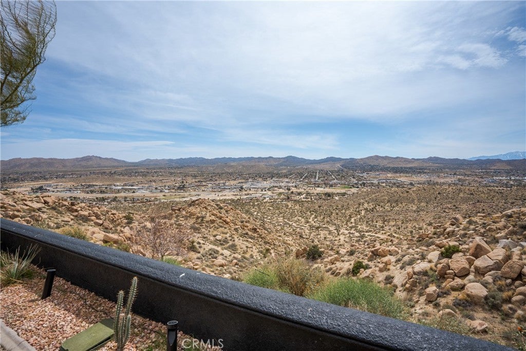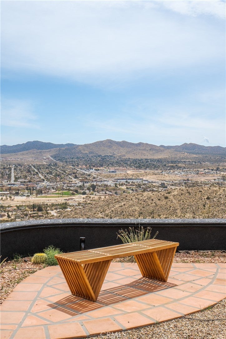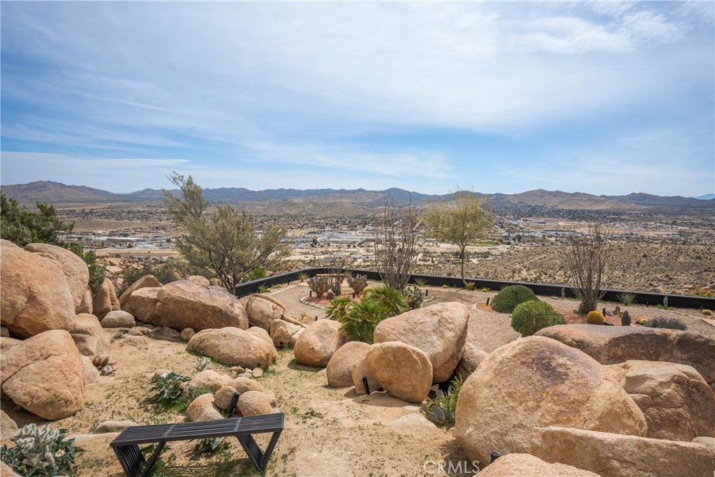 Welcome to this extraordinary creative desert compound in the coveted Western Hills Estates of Yucca Valley—an inspiring, south-facing retreat with unobstructed panoramic views and unmatched privacy. Set on 1.2 acres at the end of a quiet cul-de-sac, this desert gem offers a perfect blend of serenity, space, and soul—just minutes from Joshua Tree National Park. This 3-bedroom, 2-bath home is ideal for artists, remote workers, and desert dreamers alike. The open-concept interior features travertine flooring throughout, with spacious living and dining areas that flow seamlessly into the remodeled kitchen with countertop seating—perfect for entertaining or winding down after a day of exploration. The home has been thoughtfully upgraded, including modernized bathrooms and a beautifully updated kitchen, offering both comfort and style with a contemporary desert flair. Step outside and immerse yourself in natural beauty—native Joshua Trees, boulder formations, cactus gardens, and a serene sitting area perfect for morning coffee or evening reflection. Ample parking includes an extended driveway, street parking, and a two-car garage. With no HOA and full land ownership, this versatile property offers incredible potential as a primary residence, vacation escape, or continued short-term rental investment. A rare opportunity to own a soulful and income-generating desert retreat—come experience the magic of Yucca Valley living.