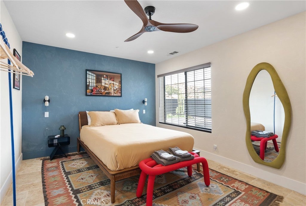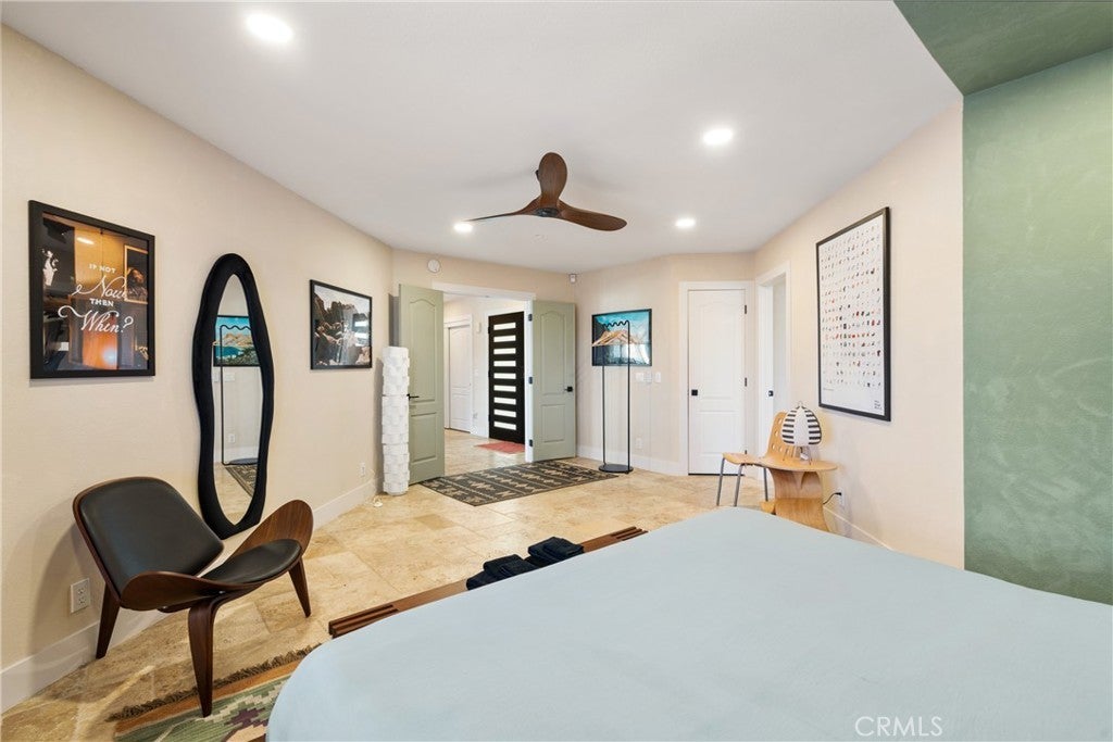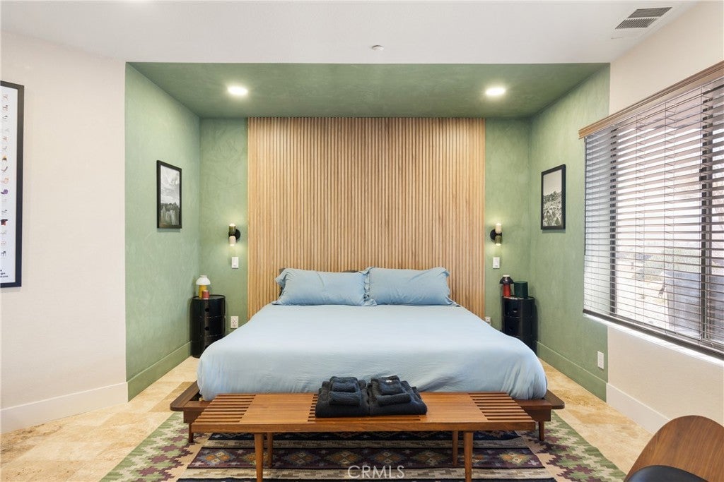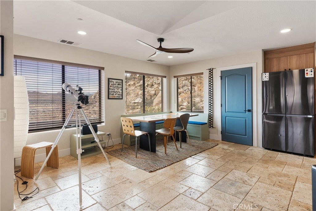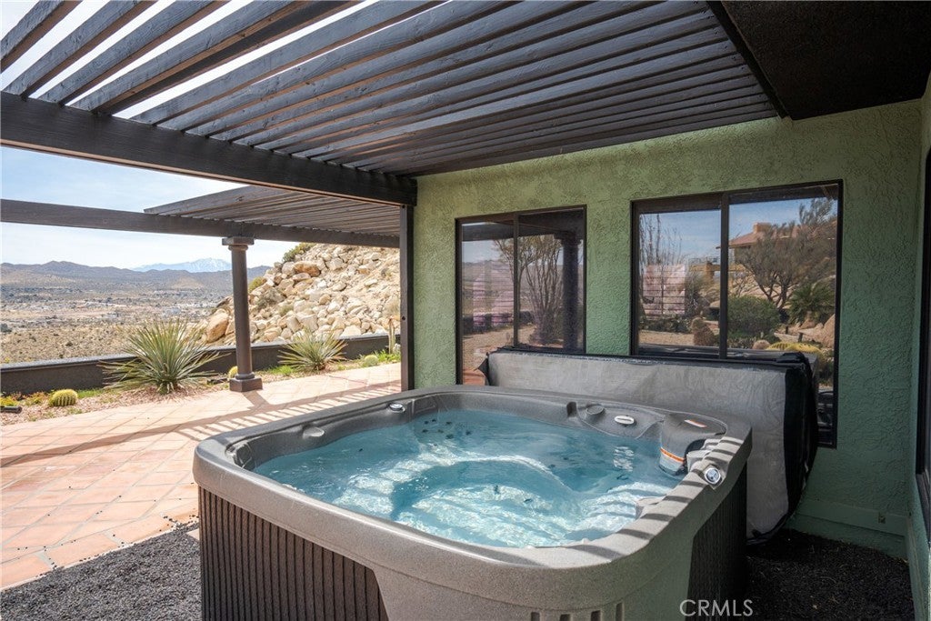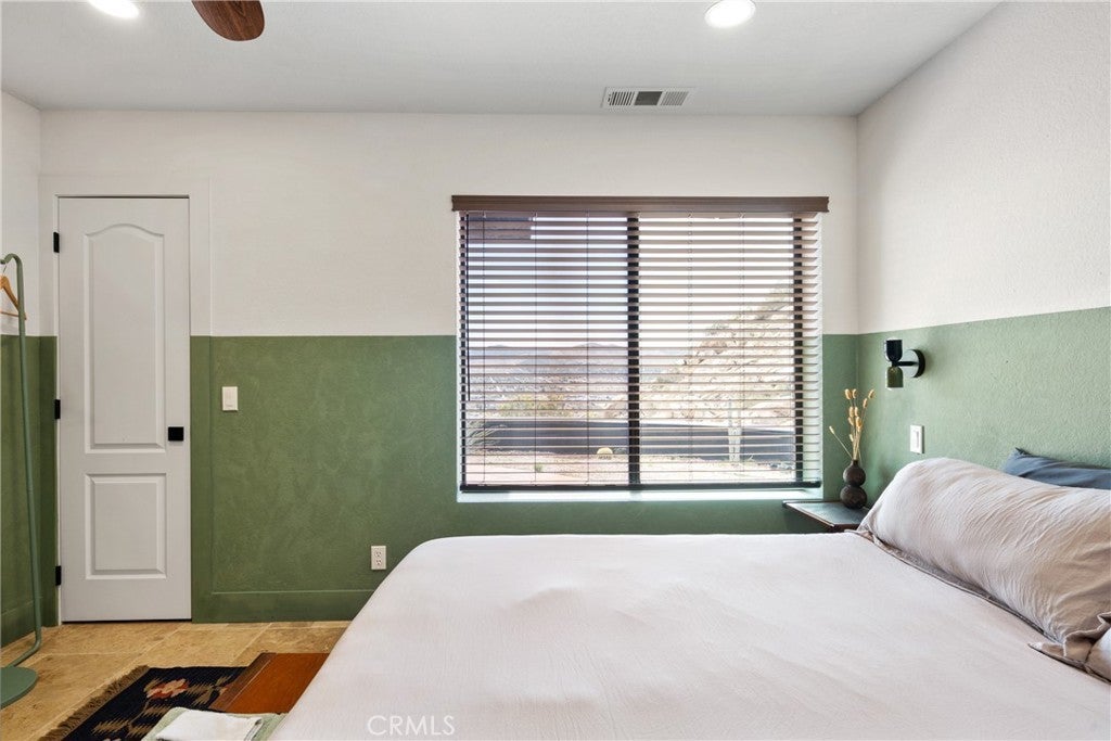 Welcome to this extraordinary creative desert compound in the coveted Western Hills Estates of Yucca Valley—an inspiring, south-facing retreat with unobstructed panoramic views and unmatched privacy. Set on 1.2 acres at the end of a quiet cul-de-sac, this desert gem offers a perfect blend of serenity, space, and soul—just minutes from Joshua Tree National Park. This 3-bedroom, 2-bath home is ideal for artists, remote workers, and desert dreamers alike. The open-concept interior features travertine flooring throughout, with spacious living and dining areas that flow seamlessly into the remodeled kitchen with countertop seating—perfect for entertaining or winding down after a day of exploration. The home has been thoughtfully upgraded, including modernized bathrooms and a beautifully updated kitchen, offering both comfort and style with a contemporary desert flair. Step outside and immerse yourself in natural beauty—native Joshua Trees, boulder formations, cactus gardens, and a serene sitting area perfect for morning coffee or evening reflection. Ample parking includes an extended driveway, street parking, and a two-car garage. With no HOA and full land ownership, this versatile property offers incredible potential as a primary residence, vacation escape, or continued short-term rental investment. A rare opportunity to own a soulful and income-generating desert retreat—come experience the magic of Yucca Valley living.