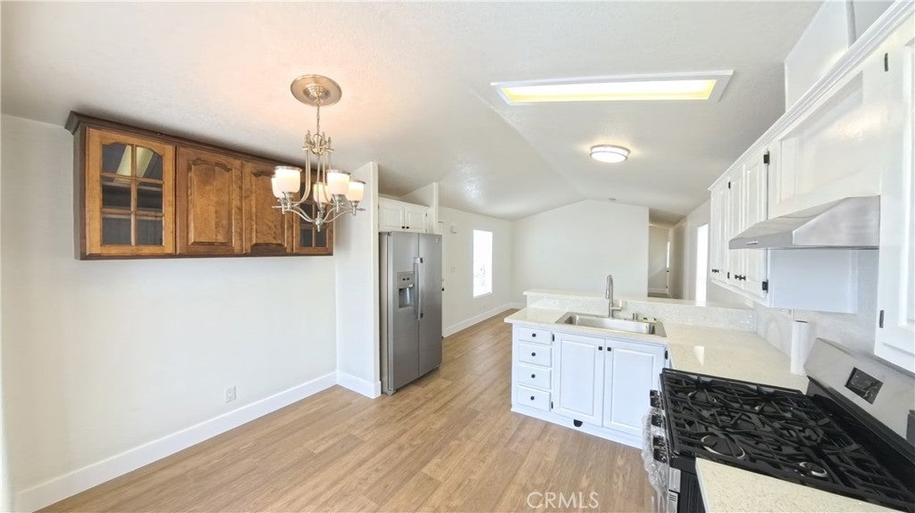 This newly remodeled 2-bedroom, 1-bath mobile home features an open floor plan with wood flooring, a granite kitchen countertop, and a brand new stove. The home includes a beautiful full bathroom, a space for a laundry area, and two additional storage units on each side. Located in a calm mobile home park, it's just minutes from Ramona Park, Buena Vista Park, CA-91, and various nearby shops and amenities, making it a great fit for a small family looking for comfort and convenience.