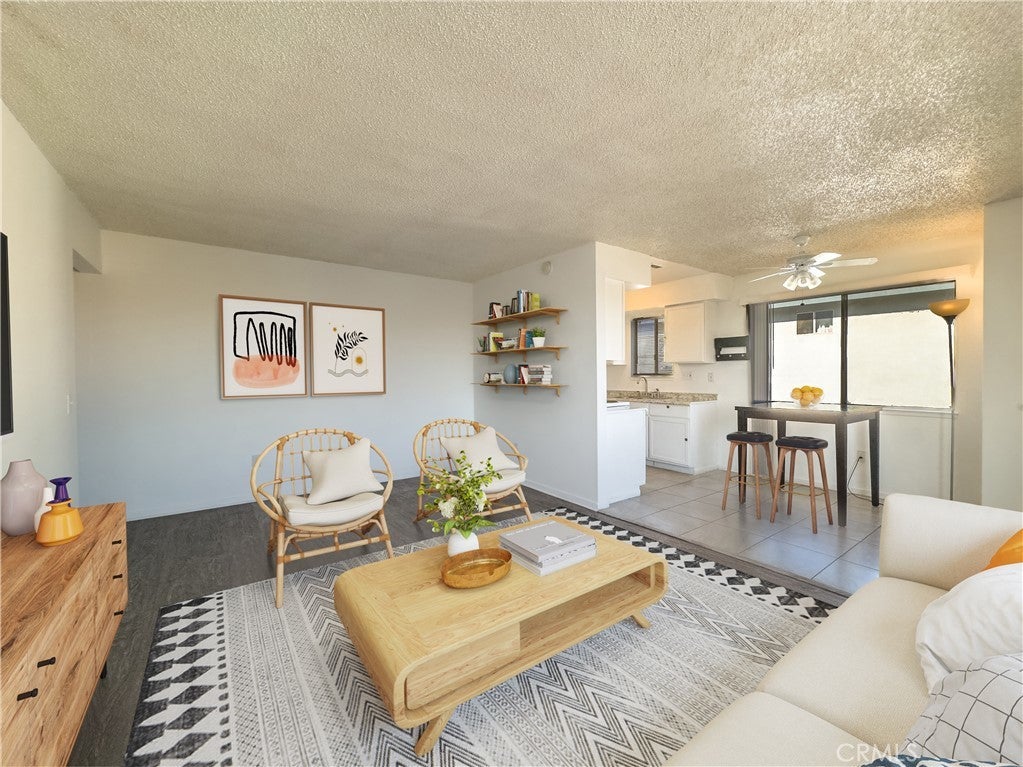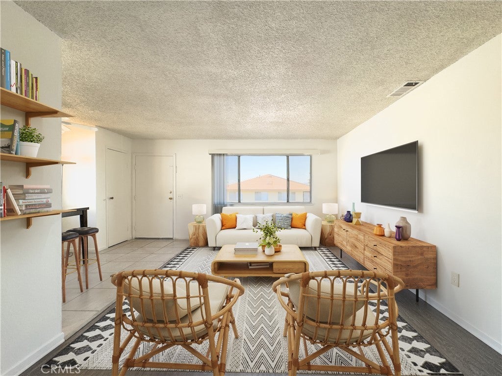 MOTIVATED SELLER - Welcome to Highland Palms! The spacious living area, adorned with newly installed sleek wood-like flooring, welcomes you with an abundance of natural light. The kitchen boasts white cabinetry, elegant countertops, stainless steel sink and a tile backsplash. With two bedrooms this home provides the perfect canvas for your unique style. Embrace the opportunity to create your ideal living space in this turnkey low-maintenance gem. Jet setters will also appreciate the short drive to SBD International Airport and plenty of entertainment awaits just 2.3 Miles at Yaamava Casino. Community Pool now open.