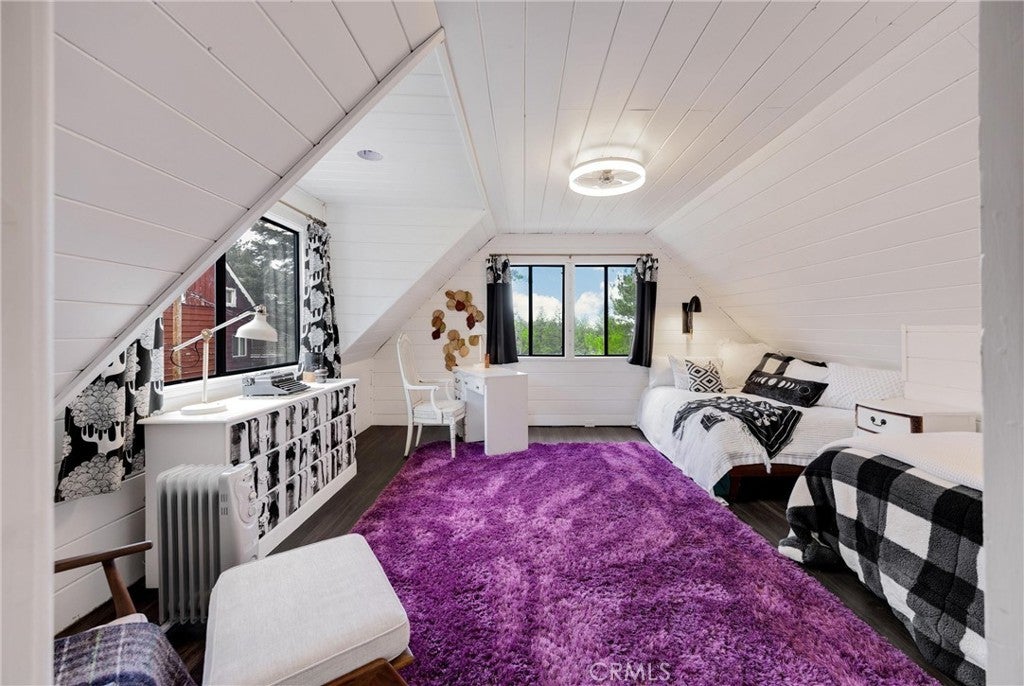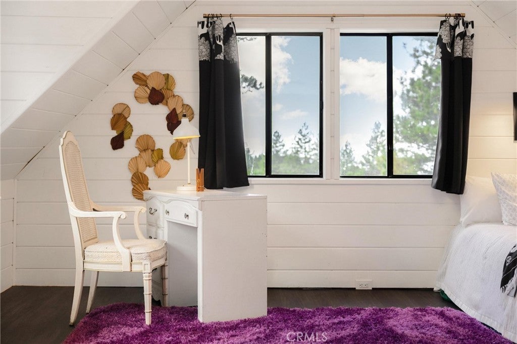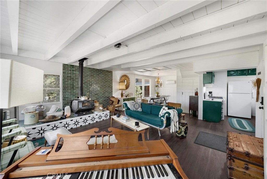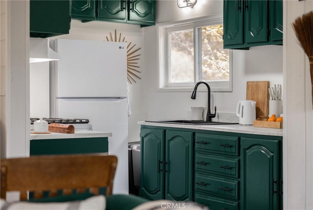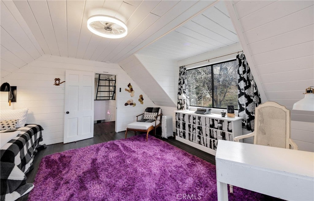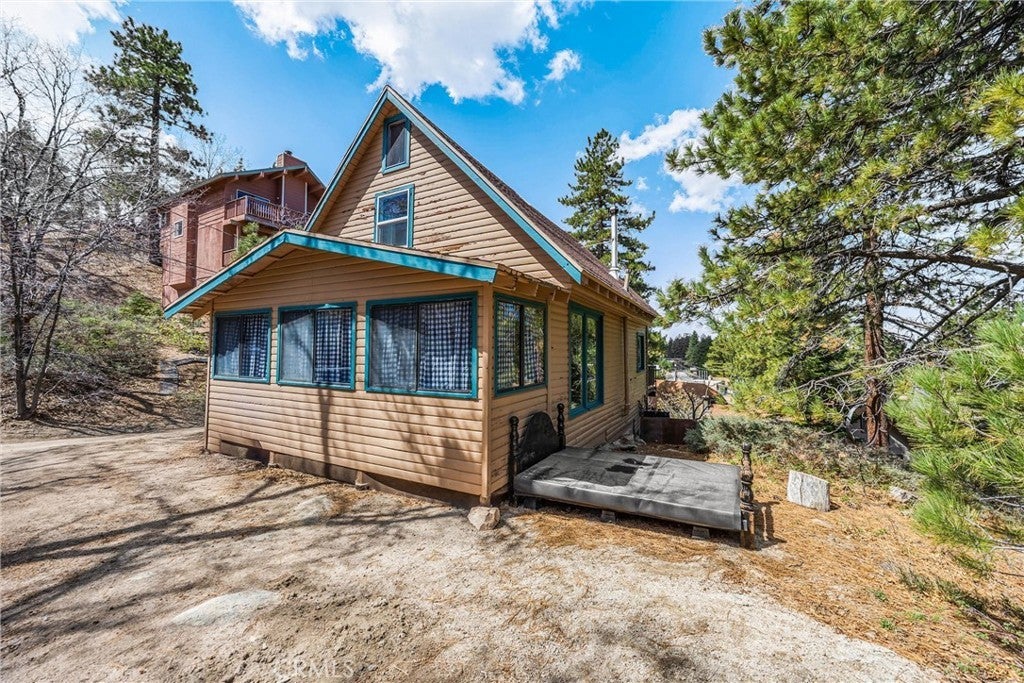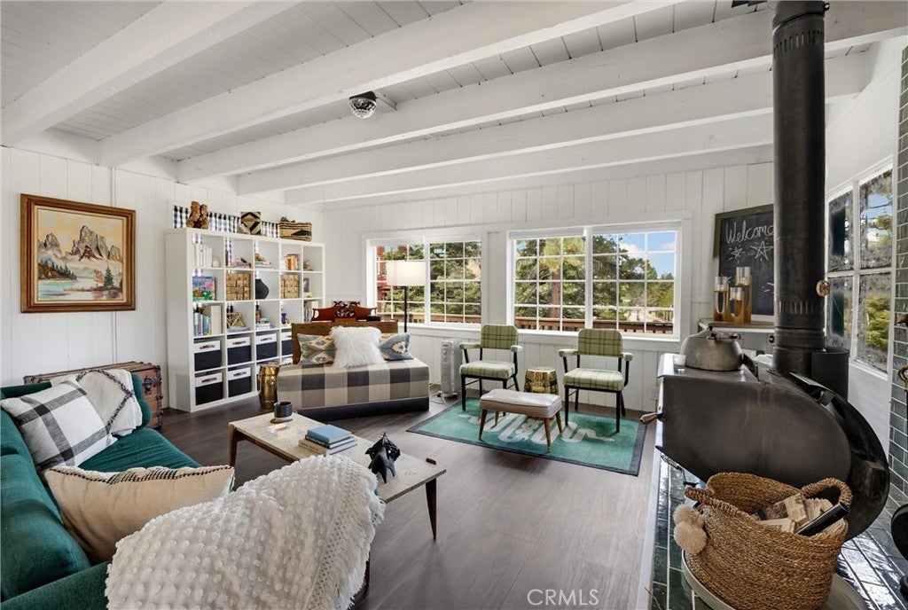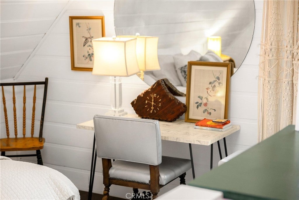 Charming, Mid-Century gem in the heart of Green Valley Lake only a few minutes walk down to the lakefront. Meticulously designed and curated as a magical escepe with friends and loved ones. Entering the front door, a bright living room greets you with a warming wood stove fireplace and dramatic emerald tile wall to frame it. Dark umber LIFEPROOF vinyl flooring throughout is easy to maintain yet keep it visually rustic. To the right of the entry, the vintage cabinets have been painted hunter green to bring in the colors of the woods and are stylishly elevated by a low-maintenance marble print laminate countertop. Gather around a table in the dining area with windows overlooking the tranquil Green Valley Lake mountainside. Towards the back, a laundry room and storage hideaway. The bathroom has been recently updated with classic touches and black finish fixtures. The steps leading to the upper levels is cleverly illuminated with a fuchsia neon sign that is simply "divine." Two bedroom areas are on the second level with battered walls painted white to brighten the space with a clean aesthetic and provide the perfect backdrop for cozy lounging or restful nights. The attic has been transformed into a peaceful retreat ideal for napping on a winter day or reading a good book in warmer weather. The attic window overlooks the spacious deck below providing an ideal outdoor space for sunsets and summer barbeques. Call this enchanting cabin your new home or keep it as a delightful income property. All furnishings and decor can be made available for those interested.