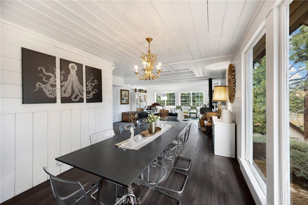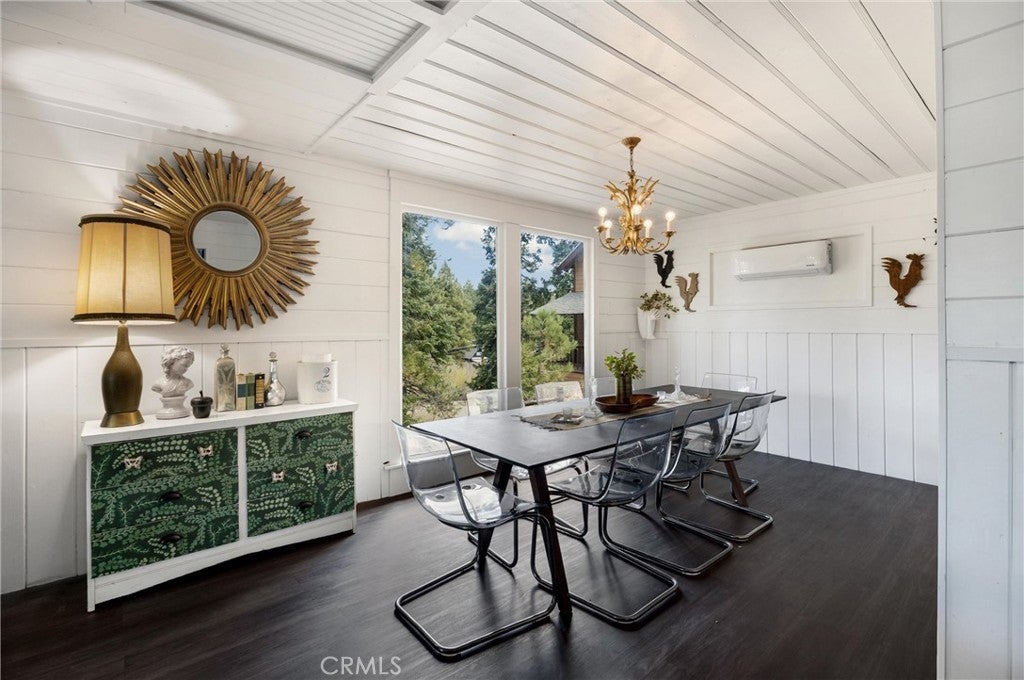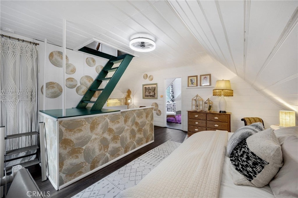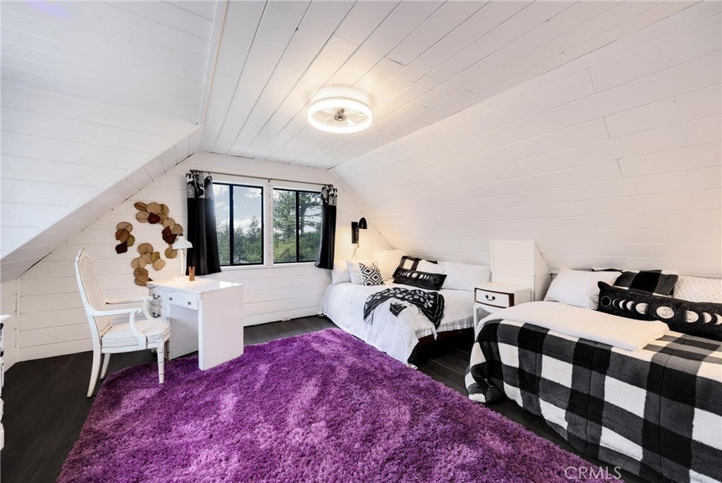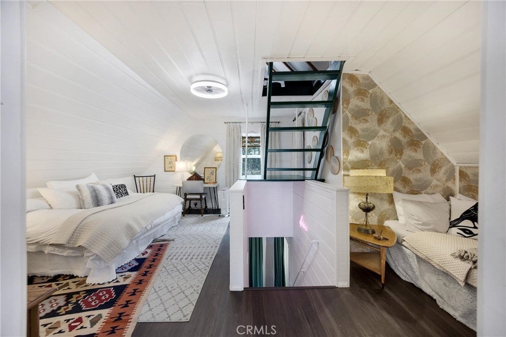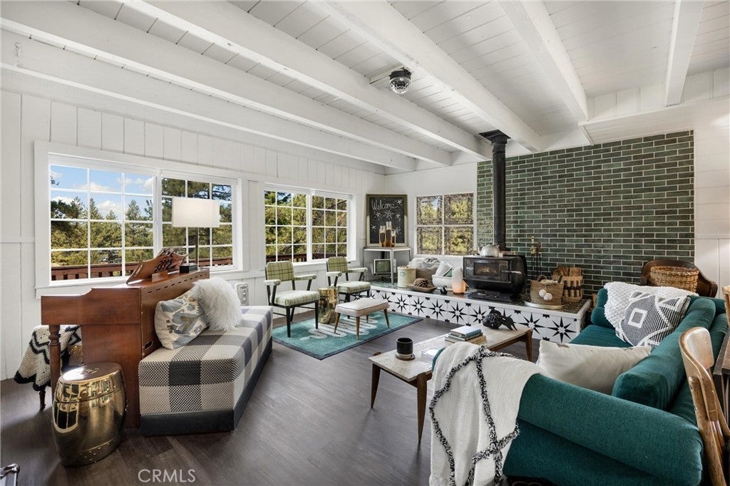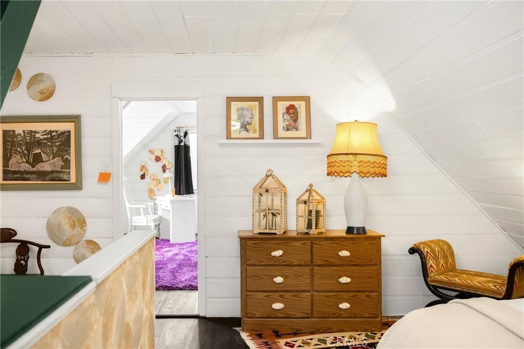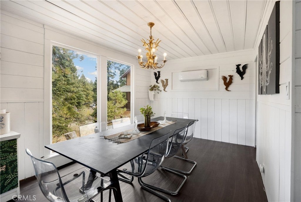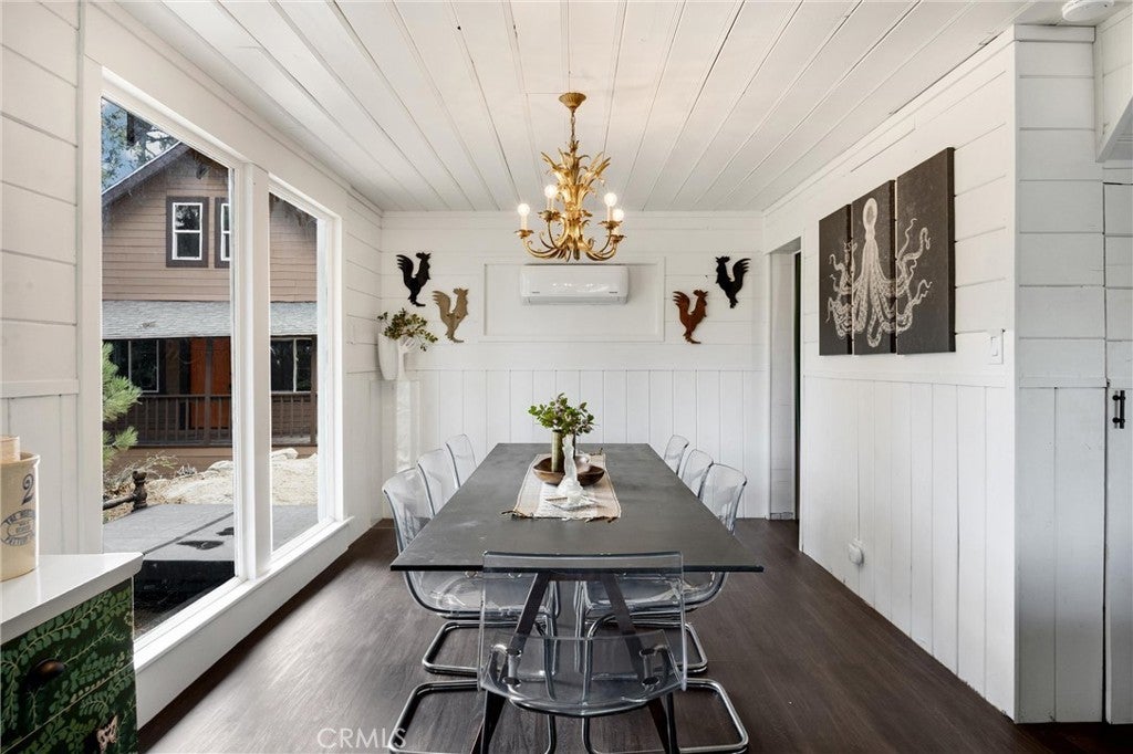 Charming, Mid-Century gem in the heart of Green Valley Lake only a few minutes walk down to the lakefront. Meticulously designed and curated as a magical escepe with friends and loved ones. Entering the front door, a bright living room greets you with a warming wood stove fireplace and dramatic emerald tile wall to frame it. Dark umber LIFEPROOF vinyl flooring throughout is easy to maintain yet keep it visually rustic. To the right of the entry, the vintage cabinets have been painted hunter green to bring in the colors of the woods and are stylishly elevated by a low-maintenance marble print laminate countertop. Gather around a table in the dining area with windows overlooking the tranquil Green Valley Lake mountainside. Towards the back, a laundry room and storage hideaway. The bathroom has been recently updated with classic touches and black finish fixtures. The steps leading to the upper levels is cleverly illuminated with a fuchsia neon sign that is simply "divine." Two bedroom areas are on the second level with battered walls painted white to brighten the space with a clean aesthetic and provide the perfect backdrop for cozy lounging or restful nights. The attic has been transformed into a peaceful retreat ideal for napping on a winter day or reading a good book in warmer weather. The attic window overlooks the spacious deck below providing an ideal outdoor space for sunsets and summer barbeques. Call this enchanting cabin your new home or keep it as a delightful income property. All furnishings and decor can be made available for those interested.