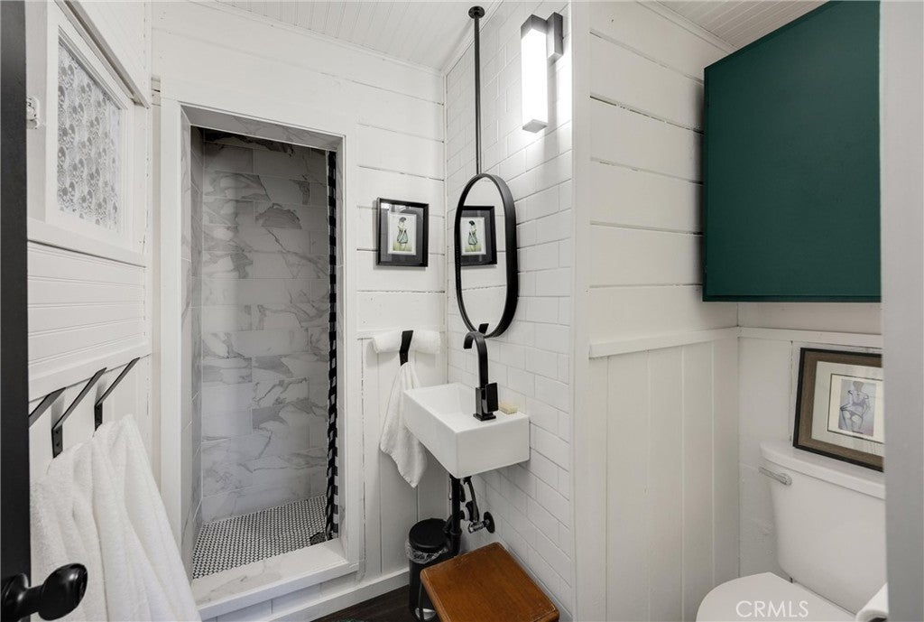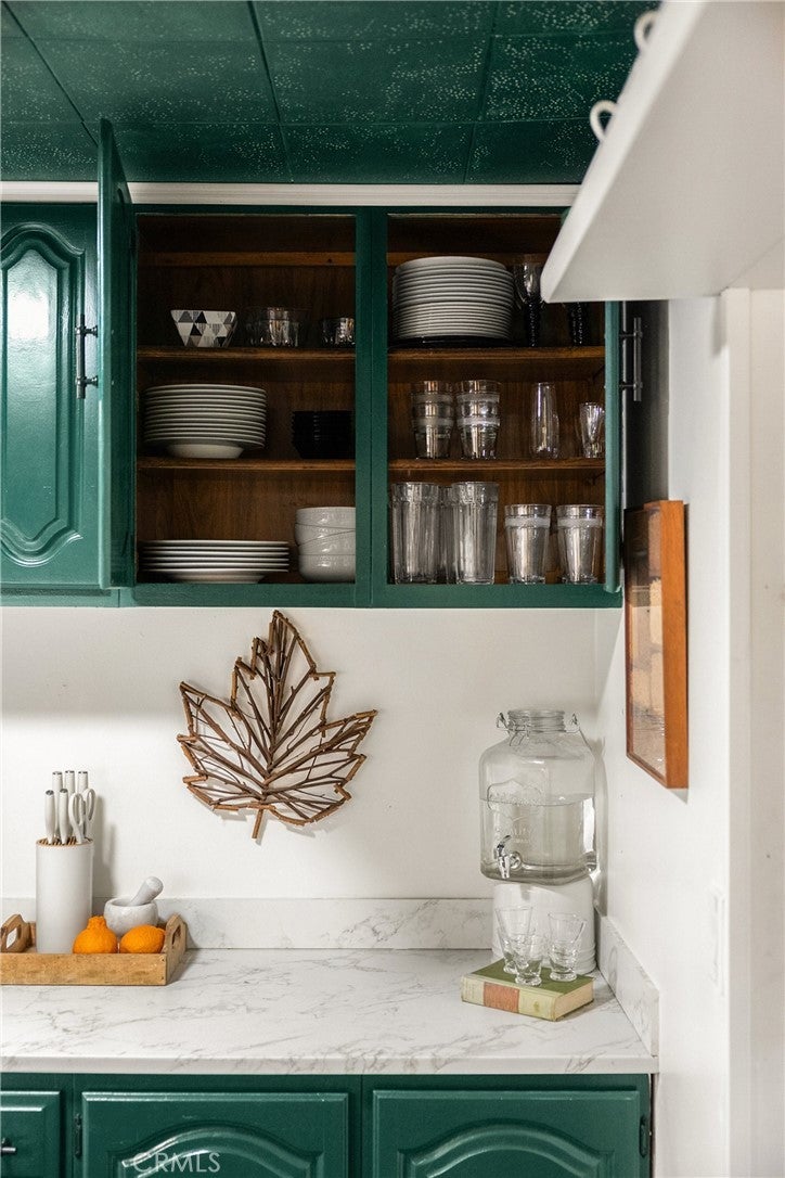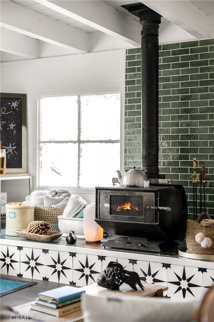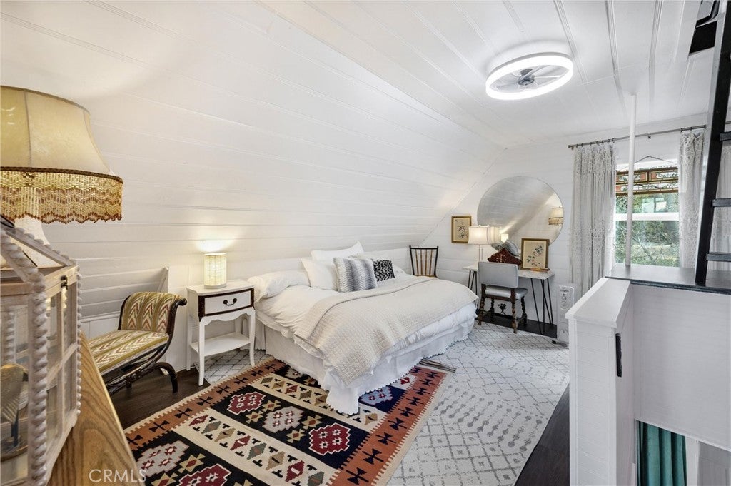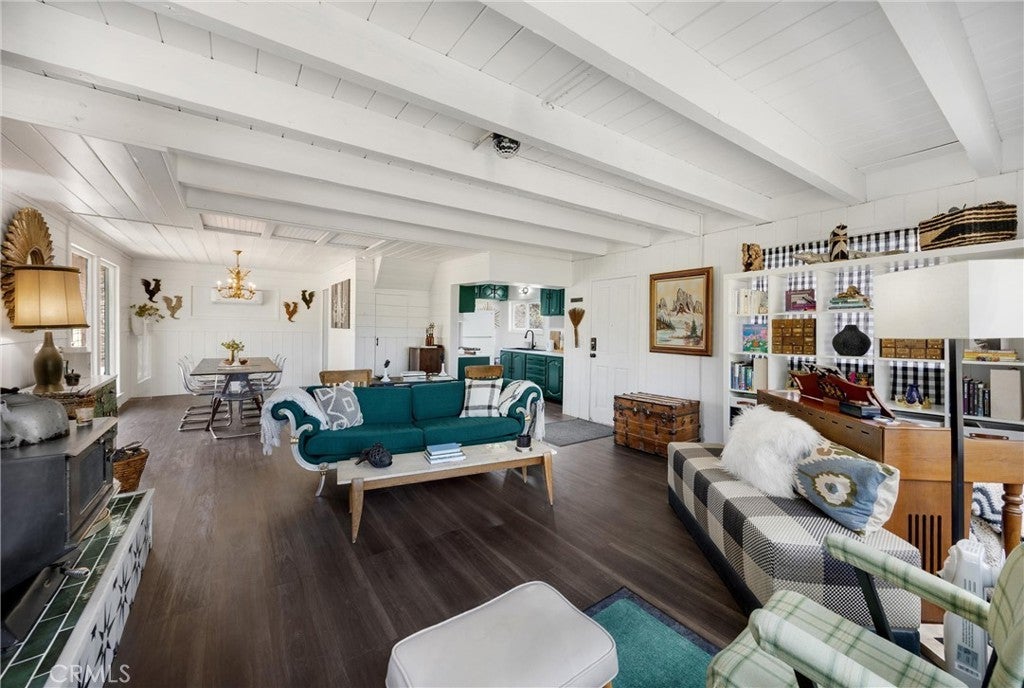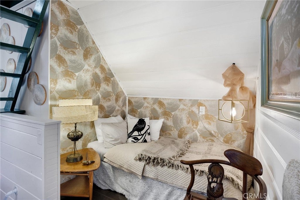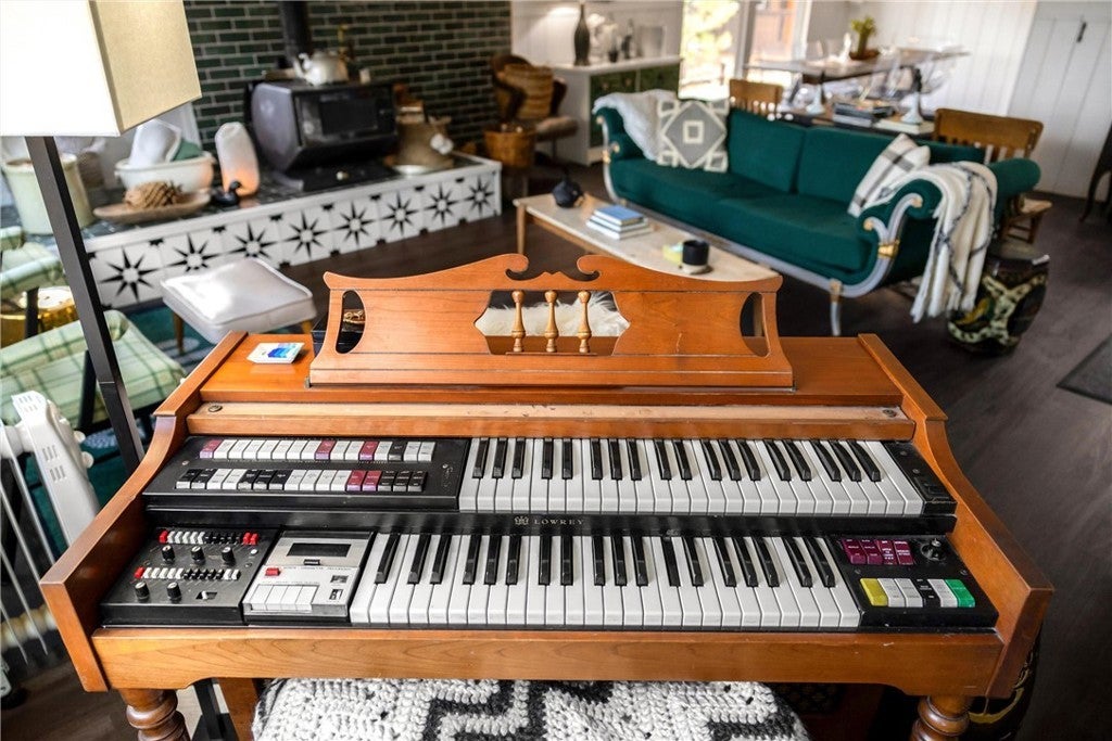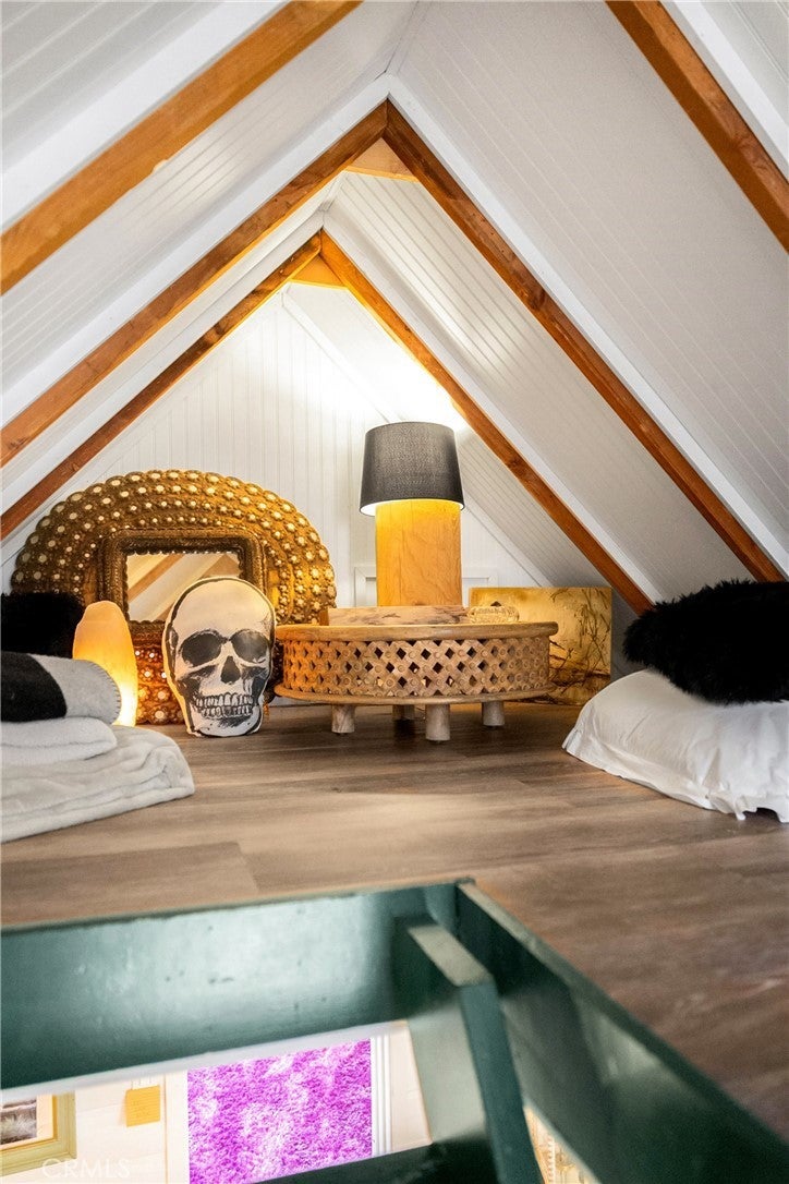 Charming, Mid-Century gem in the heart of Green Valley Lake only a few minutes walk down to the lakefront. Meticulously designed and curated as a magical escepe with friends and loved ones. Entering the front door, a bright living room greets you with a warming wood stove fireplace and dramatic emerald tile wall to frame it. Dark umber LIFEPROOF vinyl flooring throughout is easy to maintain yet keep it visually rustic. To the right of the entry, the vintage cabinets have been painted hunter green to bring in the colors of the woods and are stylishly elevated by a low-maintenance marble print laminate countertop. Gather around a table in the dining area with windows overlooking the tranquil Green Valley Lake mountainside. Towards the back, a laundry room and storage hideaway. The bathroom has been recently updated with classic touches and black finish fixtures. The steps leading to the upper levels is cleverly illuminated with a fuchsia neon sign that is simply "divine." Two bedroom areas are on the second level with battered walls painted white to brighten the space with a clean aesthetic and provide the perfect backdrop for cozy lounging or restful nights. The attic has been transformed into a peaceful retreat ideal for napping on a winter day or reading a good book in warmer weather. The attic window overlooks the spacious deck below providing an ideal outdoor space for sunsets and summer barbeques. Call this enchanting cabin your new home or keep it as a delightful income property. All furnishings and decor can be made available for those interested.
