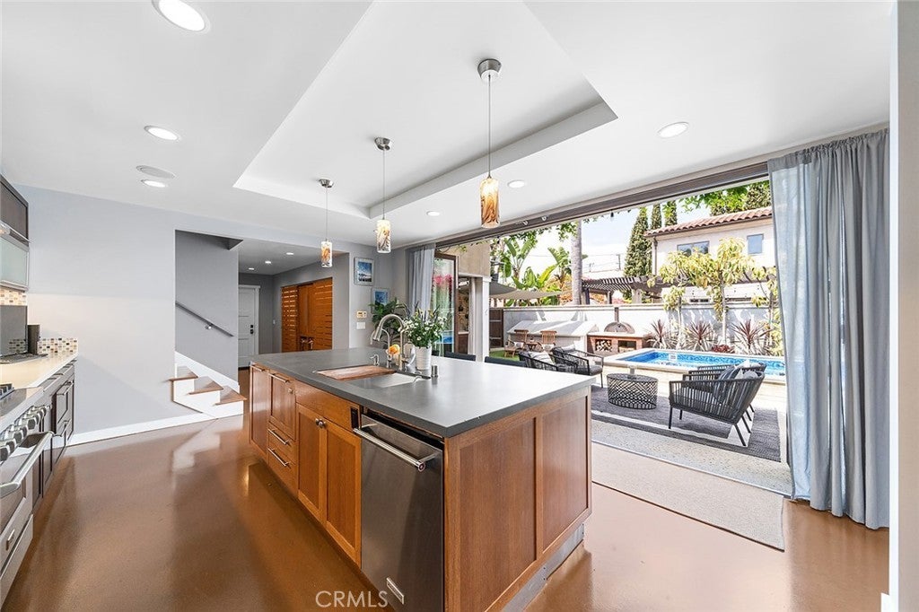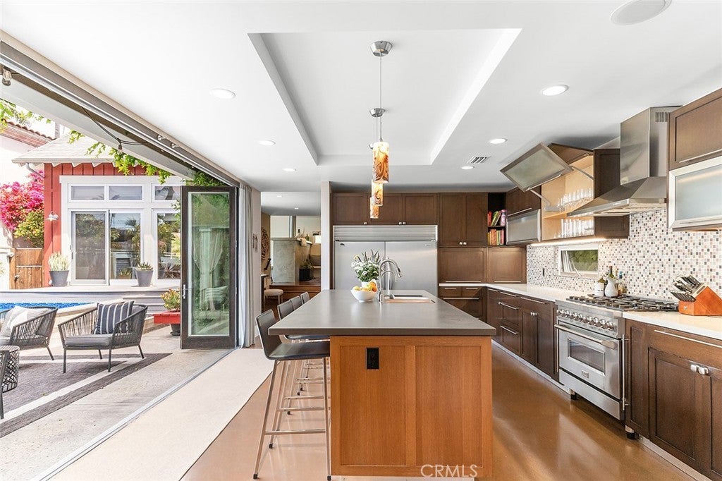 Welcome to our stunning Australian Farm House - a style that blends modernism with old world charm. Estate in Belmont Heights home is in the heart of Long Beach, CA, which is just blocks from the bay, sandy beaches, shopping, and dining. 291 Argonne offers an expansive 4,400 square feet of luxurious living. This meticulously renovated home boasts five spacious bedrooms and four elegant bathrooms, designed for both comfort and style. 4 car garages. Step inside to discover a harmonious blend of modern design and classic charm. The home features ten beautifully appointed rooms, including a formal dining room perfect for entertaining and two family rooms perfect for relaxation. The interior is enhanced by dual pane, floor-to-ceiling, and oversized windows that flood each room with natural light, complemented by window treatments for privacy. The state-of-the-art chef's kitchen is a culinary dream, spacious island, equipped with a butler's pantry, island, stainless steel appliances, and an eat-in area. The home’s thoughtful design extends to the bedrooms, offering custom and walk-in closets and the bathrooms, featuring granite and tile finishes, double sinks, and a luxurious primary ensuite with a soaking tub and second ensuite with it's own private balcony great for guest! Fold back the floor to ceiling windows to bring the outdoors in and enjoy California’s beautiful weather in your private outdoor oasis that includes, beautiful pool views, built-in barbecue, wood burning pizza oven, private dining alcove with a cozy fireplace, and a relaxing fire pit. Additional features include beautifully polished concrete flooring, plus carpet and hardwood, recessed lighting, skylights, dual central heating and cooling systems, laundry, and convenient 2-2 car attached garages and additional parking for 2 cars which makes a total of 6 places to parking. Experience upscale living in this exceptional Long Beach home, designed for those who appreciate both elegance and functionality.