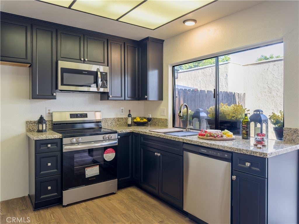 WARRANTABLE (FINANCEABLE) COMMUNITY!! Welcome to Corsican Villas in Brea. Step into a world of endless possibilities in this exquisite Brea residence. This gem boasts three bedrooms and three bathrooms, offering the perfect canvas for your ideal living space. Prepare to be captivated by the abundance of natural light that floods through large windows, creating an airy and inviting atmosphere throughout. The living areas showcase stunning hardwood style floors, adding warmth and sophistication to every step. The sleek, modern kitchen is a culinary enthusiast's dream, featuring NEW elegant dark cabinetry, NEW gleaming Santa Cecilia granite countertops, and NEW high-end stainless steel appliances. Retreat to the luxurious primary bedroom, a spacious haven that promises restful nights and serene mornings. This home is not just a place to live; it's a lifestyle upgrade. Imagine entertaining guests in the open-concept living areas, or enjoying quiet moments gazing out at the lush greenery visible from your windows. With its prime location at 1663 Gatewood Ct in Brea, you'll have easy access to local amenities while enjoying the tranquility of your personal oasis. Don't miss this opportunity to transform your living experience and make your dream home a reality. Welcome to a space where comfort meets elegance, and every day feels like a fresh start.