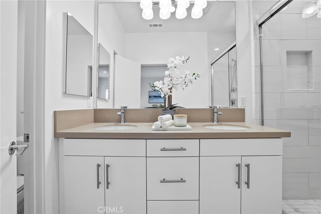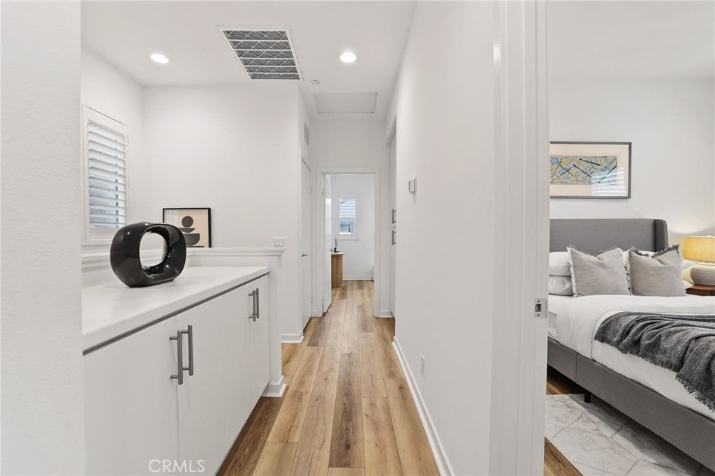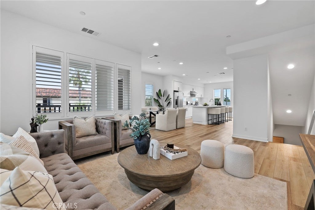 Welcome to Twenty8 Walk, a gated community of detached single-family homes in the heart of Costa Mesa. This residence, located in the community’s most desirable spot with a highly sought-after floor plan, offers a modern lifestyle and exceptional comfort. The main level features a spacious bedroom with private backyard patio access, a full bathroom, and an attached two-car garage with epoxy flooring. The second level boasts a bright, open-concept layout with a stunning kitchen, large island, stainless steel appliances, an enclosed balcony, a powder room, and shutters throughout. The top floor includes two bedrooms connected by a Jack-and-Jill bathroom, plus a primary suite with dual vanity, walk-in shower, and walk-in closet. Ideally situated near top schools, dining, shopping, golf courses, and the beaches of Newport Beach and Costa Mesa, this home also features owned solar panels and a tankless water heater.