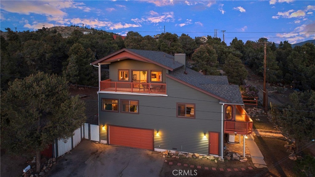 Welcome to your dream equestrian retreat with breathtaking views of Baldwin Lake, surrounding mountains, and glowing sunsets. Situated on over 2 acres of serene land, this rare property blends the tranquility of mountain living with the convenience of nearby access to the High Desert. Boasting over 3,100 square feet of living space, this spacious home features dual suites on both levels, ideal for multi-generational living or hosting guests. A large fenced yard, horse corral, barn, and arena make it a perfect haven for equestrian enthusiasts. Enjoy low-maintenance living with vinyl siding, a 40-year roof installed in 2012, and durable Trex decking for year-round outdoor relaxation. The oversized 2-car attached garage offers ample storage space, while a Generac 14kW whole-house backup generator powered by natural gas ensures you’re never left in the dark. The home is equipped with owned solar panels and sits on a private well, providing energy efficiency and independence. Step outside and soak in the surrounding natural beauty while enjoying unmatched privacy and space. Whether you’re looking to ride, relax, or simply breathe in the mountain air, this one-of-a-kind property offers it all. Equestrian living, stunning views, and sustainable features — all within reach of the valley below. Don’t miss your chance to own a piece of Big Bear’s best-kept secret.