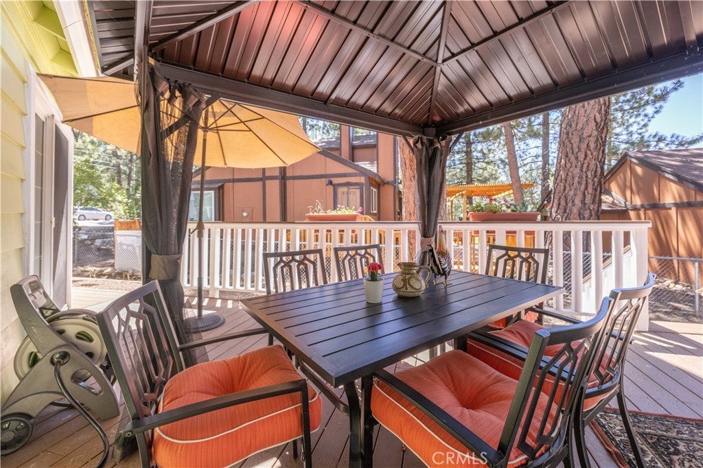 Don’t miss this charming 2 bedroom, 2 bath mountain cottage with an oversized one car garage located in the heart of Big Bear Lake. Not a detail was missed in this beautifully remodeled home which includes new flooring, new windows, new paint inside and out, newer appliances, new blinds, fully updated bathrooms, new wall A/C unit in master and an updated laundry area. Outside you’ll find a spacious deck with new trex decking where you can enjoy our beautiful outdoor living with a table for 6 and an open lounging area. Nestled in the trees on a large street-to-street lot with a large fenced back yard and a gated opening with plenty of room for boat or RV parking. All centrally located less than a mile and a half from our year-round ski and bike resort, Snow Summit, The Village, the National Forest, and the park. Coming mostly furnished, turnkey, and ready for you to enjoy!