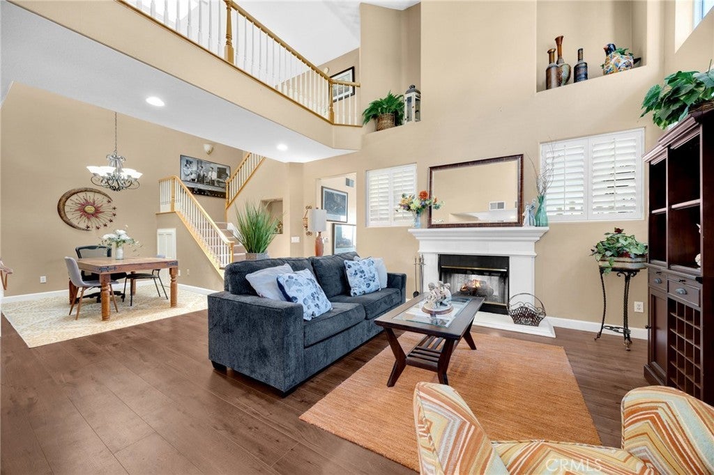 This Beautiful home is located in the highly sought after La Terraza development on the east side of Yorba Linda. This warm and welcoming home has a spacious layout designed for everyday comfort and great for entertaining. As you step inside you're greeted by high ceilings and large windows that fill the home with natural light. The open-concept living and dining areas highlighted by a double sided fireplace that also connects to a cozy family room and breakfast nook-perfect for casual gatherings. The kitchen features granite countertops, a walk-in pantry and a built-in buffet that provides extra storage and serving space. Upstairs, the expansive primary suite offers a peaceful retreat with a large closet, soaking tub, dual sinks, and a walk-in shower. Two additional bedrooms are located nearby, along with a versatile loft space that can easily function as a home office, playroom or fourth bedroom. A full hall bathroom serves the secondary bedrooms and loft. The backyard offers a pergola-cover patio, and gas ready BBQ area. Attached 2-car garage with direct access. community amenities include saltwater pools tennis and basketball courts. Close to award winning schools, shopping and Bryant Ranch park.
