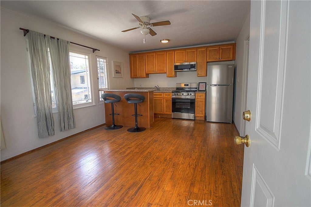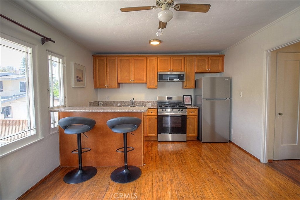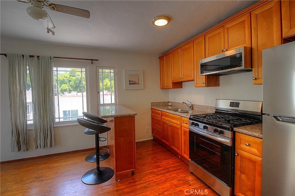 A beautiful 1 bedroom, 1 bathroom apartment located steps away from a flight of steps that leads you directly onto the heart of Sunset Junction in Silver Lake. This second floor 1 bedroom, 1 bathroom apartment has plenty of closets and a nice view of the Griffith Park Observatory and greenery. Hardwood/laminate floors, granite countertops, breakfast bar, brand new stainless steel appliances, and a brand new in-unit washer/dryer. Comes with one (1) parking space and this property is secured by a beautiful automatic gate. Enjoy being just minutes away from one of the trendiest areas of Silver Lake. A short walk to your favorite restaurants, coffee shops like Intelligentsia and Camel, bars, markets like Erewhon, retail stores and farmer’s market.