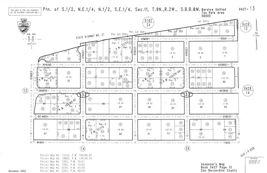 Opportunity to own a well-located infill Lot with excellent accessibility near the intersection of the I-15 and I-40 freeways. The property has paved road frontage and is surrounded by established, residential, retail, restaurants, and key local amenities. High-traffic area offers strong visibility—ideal for future development or long-term investment. Don’t miss the chance to invest in Barstow’s growing landscape. Public water in street, electric pole at the front. Property is fenced and has a double gate at the front. APN: 0427-132-37-0000 ; GPS: 34.881687, -117.054588 ; Size: 9,925 SF ; Zoning: RS-1 ;