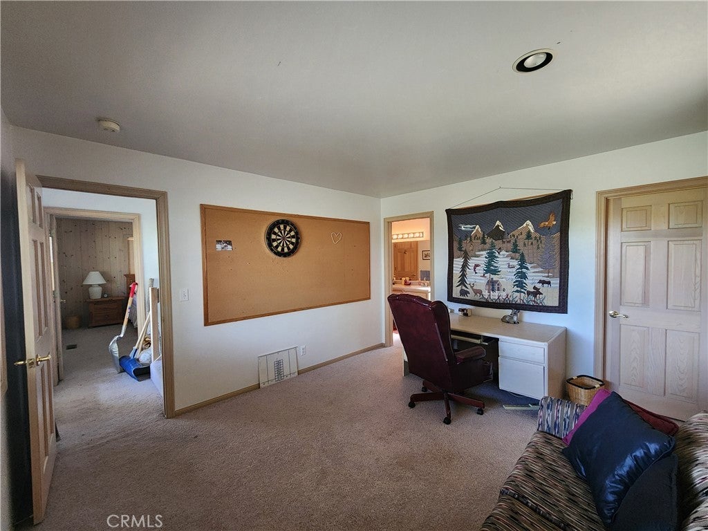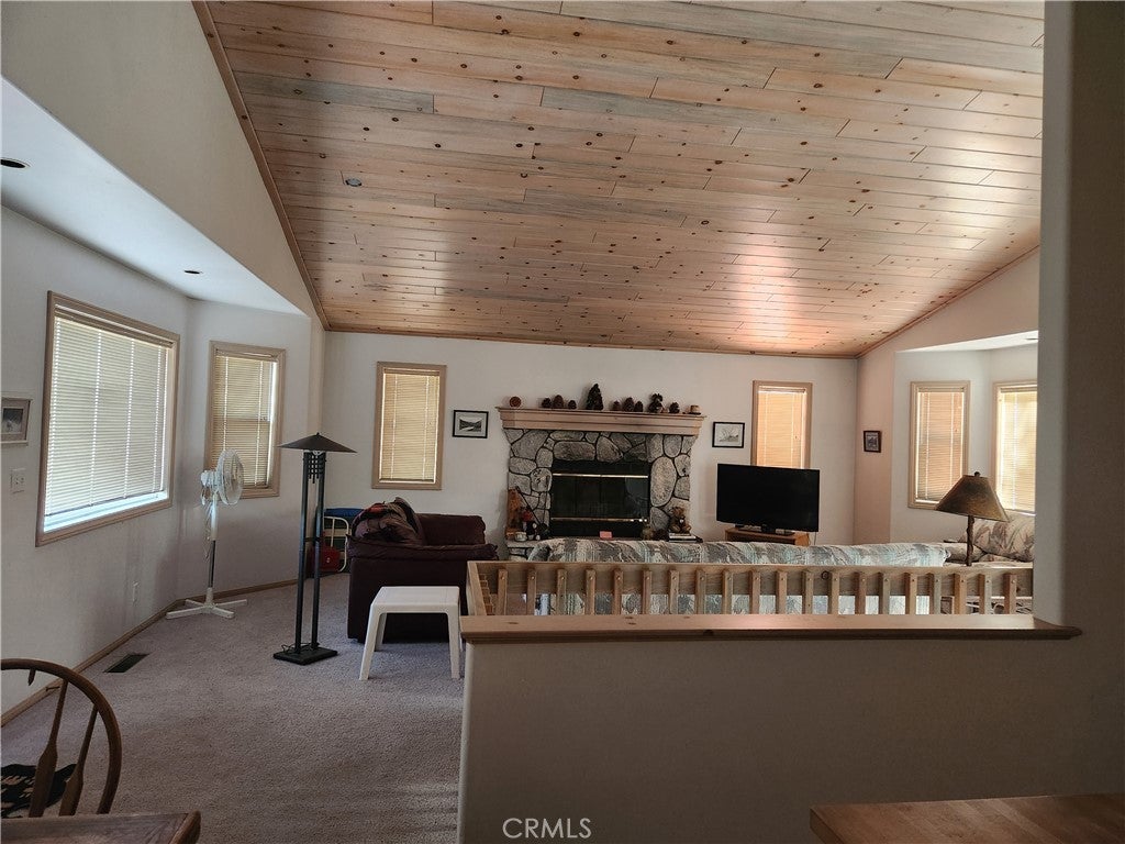 Welcome to an exquisite mountain retreat located in the serene Moon Ridge area of Big Bear, California. This charming 2-bedroom, 2-bathroom residence, with its impressive 1,344 sq. ft. layout, offers a unique opportunity as it comes from the original owner, maintaining its authentic character and charm. Upstairs, you'll find a vaulted ceiling living room adorned with a charming wood-burning fireplace, perfect for cozy nights. Enjoy a spacious kitchen and dining area that effortlessly flows onto a deck showcasing breathtaking mountain views. The home features two downstairs bedrooms connected by a Jack and Jill bathroom, complete with a tub shower for ease and comfort. This property includes essential furnishings like the refrigerator, living area furniture, and bedroom furniture, along with some ski gear to enhance your mountain adventures. Ideally situated adjacent to the Big Bear Mountain Alpine Zoo, the Golf Course, Village shopping area, and Big Bear Lake. Enjoy a short drive to ski slopes or explore the nearby walking, hiking, and biking trails. The property's prime location combined with its inviting features make it a perfect getaway or year-round residence in the heart of nature.