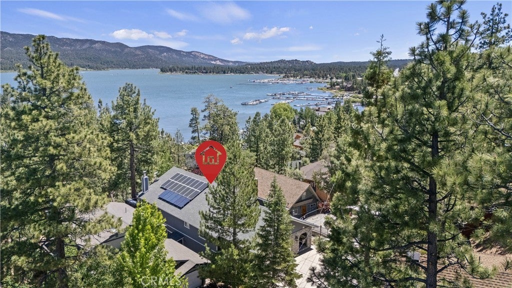 Incredible LAKEVIEW from this huge custom residence located on a lovely small cul de sac. Awesome upgrades include owned solar system (owner has no electric bill!), oversized tankless water heater and full house water filter system, central A/C, quick full house vent system for instant cooling, and luxury fireplace insert. The primary suite is on the main level with a beautiful bathroom and spacious walk in closet. There is a large guest bedroom and second full guest bathroom on the main level. The star of the show is the immense great room with soaring cathedral ceilings, expansive center island kitchen w/ both gas range, second electric cooktop and oven, granite counters and LAKEVIEWS! This is the home to entertain your guests with fun lakeview bar in the greatroom, unbeatable views from the living, dining rooms and decks. Downstairs there is a fabulous game room with pool table, antique bar, dart board, tv area and half bath. Also, downstairs are two more generously sized guest bedrooms and another full bath. The upper and lower decks are "trek" decks and both have views of the lake. This is the house to watch the fireworks on 4th of July! 40258 Narrow Lane is clean as a whistle, has been immaculately maintained and will sell furnished per inventory list. It has not been a vacation rental but would sleep 12-14 easily.