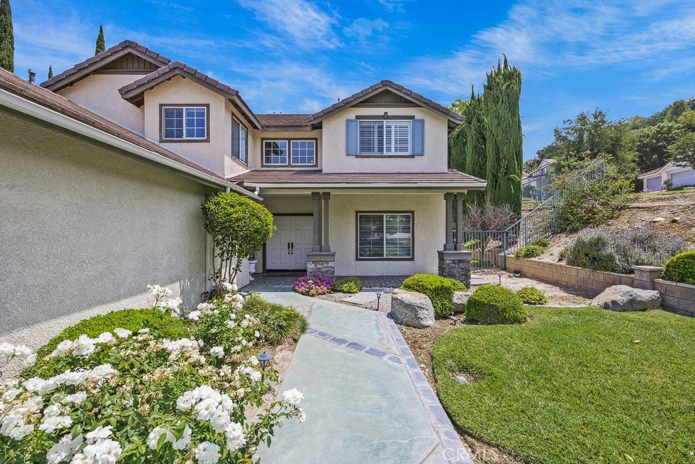 Welcome to 2504 Martingail Drive, located in the exclusive Les Maisons at Covina Highlands. This beautiful residence is situated in a private gated community with 24-hour attendant service, offering peace, privacy, and a tranquil setting nestled in the hills of Covina. As you enter through the double doors, you're greeted by a stunning chandelier. This expansive 5-bedroom, 3.5-bathroom home offers 3,262 square feet of thoughtfully designed living space that combines comfort, functionality, and elegance. The main level includes 2 bedrooms, one with an ensuite, providing a flexible layout ideal for guests or multigenerational living. Formal living and dining rooms provide distinct spaces for entertaining, while the inviting family room is ideal for relaxed gatherings. The kitchen is both stylish and functional with soft-close drawers, a large center island, and a premium Bertazzoni gas range, perfect for preparing meals and hosting gatherings. Upstairs, the spacious primary suite offers a private balcony, a large walk-in closet, and a spa-inspired ensuite bathroom complete with a soaking tub and separate shower. A generous loft provides additional space that can be used as a home office, media room, or play area. The property also includes a 4-car garage and a wide driveway with ample parking and storage. Large windows throughout the home fill the space with natural light, while the backyard offers a private and spacious setting perfect for outdoor entertaining or quiet family time. Additional highlights include a powder room on the main floor, a dedicated laundry area with a built-in sink, convenient access to the 10 and 57 freeways, and nearby shops and dining. Enjoy leisurely walks throughout the well-maintained community and nearby Schabarum Skyline Trail.